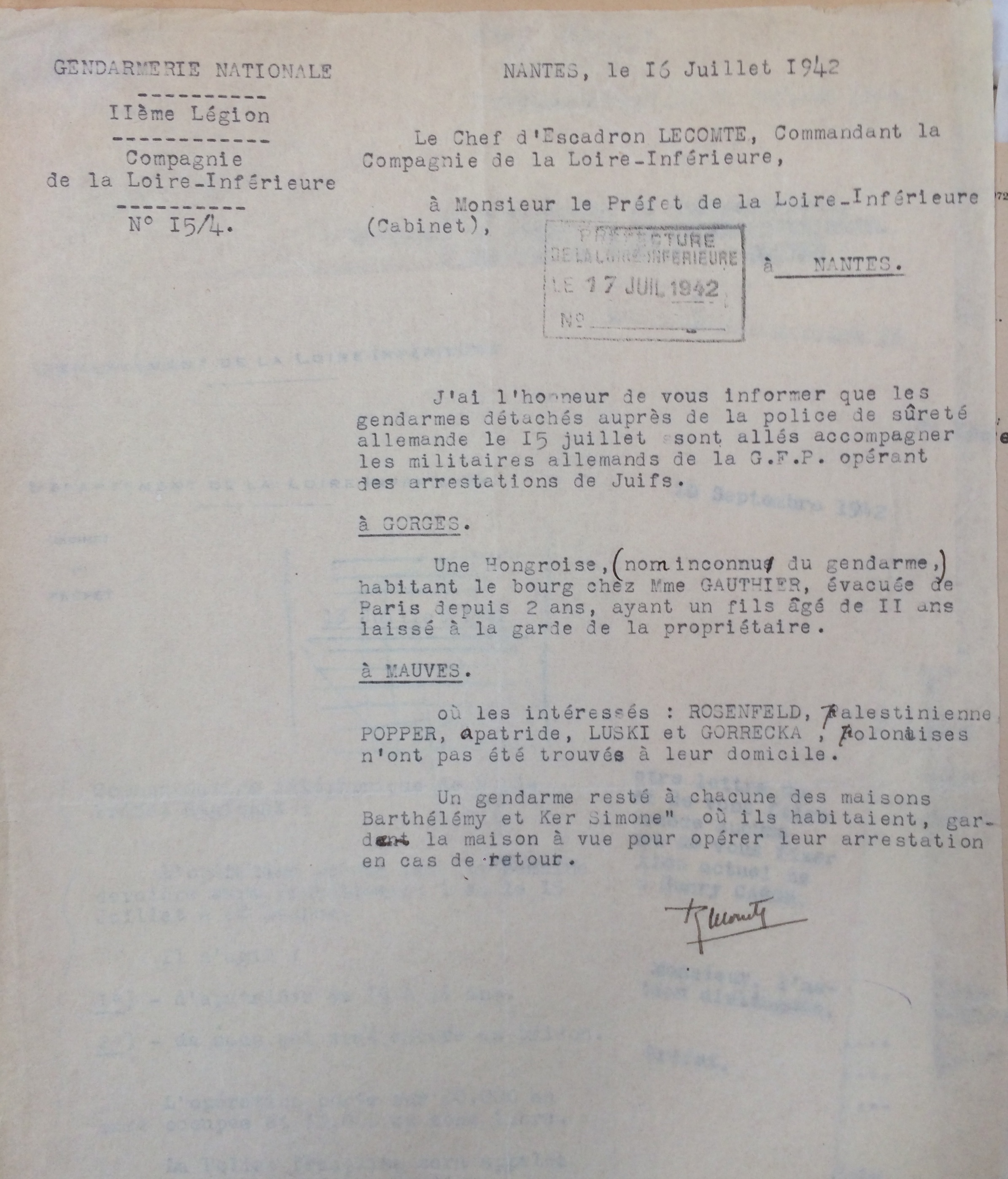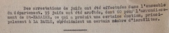 La réaction de la population semble avoir été assez vive. Preuves en sont les deux commentaires que rédige le secrétaire général de la Préfecture de Loire-Inférieure dans son rapport mensuel qu’il envoie au Ministère de l’Intérieur le 01 septembre 1942 et couvrant la période juillet-août 1942.