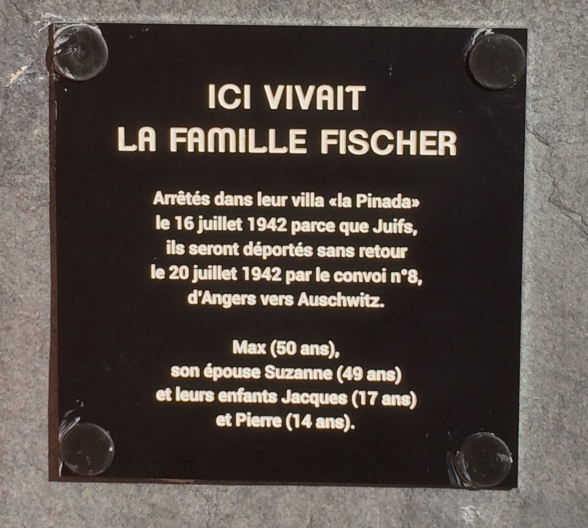 Max FISCHER (50 ans) et ses deux enfants Jacques (17 ans) et Pierre (14 ans) sont déportés par le convoi numéro 8 d’Angers vers Auschwitz le 20 juillet à 20h35.
