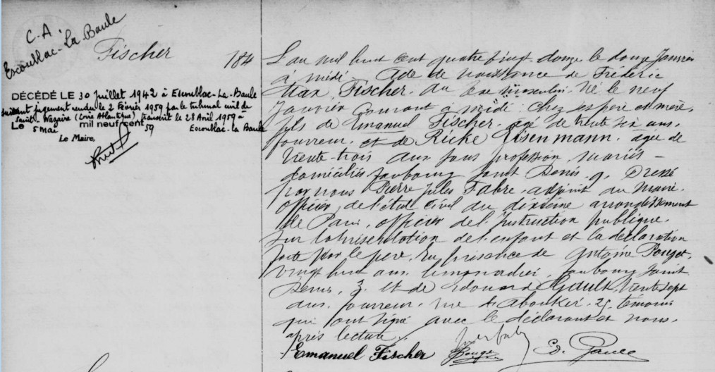La soeur de Jacques FISCHER, Elisabeth de NATTES, résidant à Paris, effectuera les demandes de régularisation d’Etat-civil après-guerre. Les meubles de l’appartement de la rue Réaumur seront placés dans un garde-meubles.