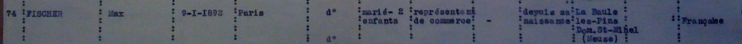 Le registre comme indiqué dans le courrier du sous-préfet répertorie les chefs de famille avec nom, prénom, date et lieu de naissance, nationalité… Ce registre de la sous-préfecture a disparu. Seule subsiste la liste dactylographiée transmise au Préfet au 08 novembre 1940. La famille FISCHER s’est fait recenser en numéro 74 sur cette liste suivi par le père de Suzanne, Ernest SEE.