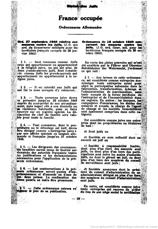 Entre le 27 septembre 1940 et le 20 octobre 1940, les Juifs de l’arrondissement de Saint-Nazaire sont sommés de se présenter à la sous-préfecture ou dans les commissariats pour s’enregistrer en tant que Juif suite à la parution de la première ordonnance allemande du 27 septembre 1940 définissant le statut du Juif et obligeant au recensement.
