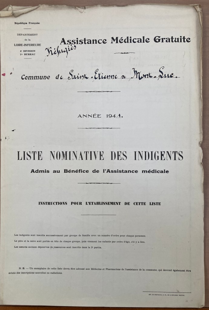 Ruth et Anja quittent Sainte-Anne-de-Campbon pour Saint-Etienne de Montluc (date et raison inconnues). Par décision de la Commission Cantonale du 21 mars 1941, Anja bénéficie de l’assistance médicale gratuite, résidant au Bourg de Saint-Etienne de Montluc.