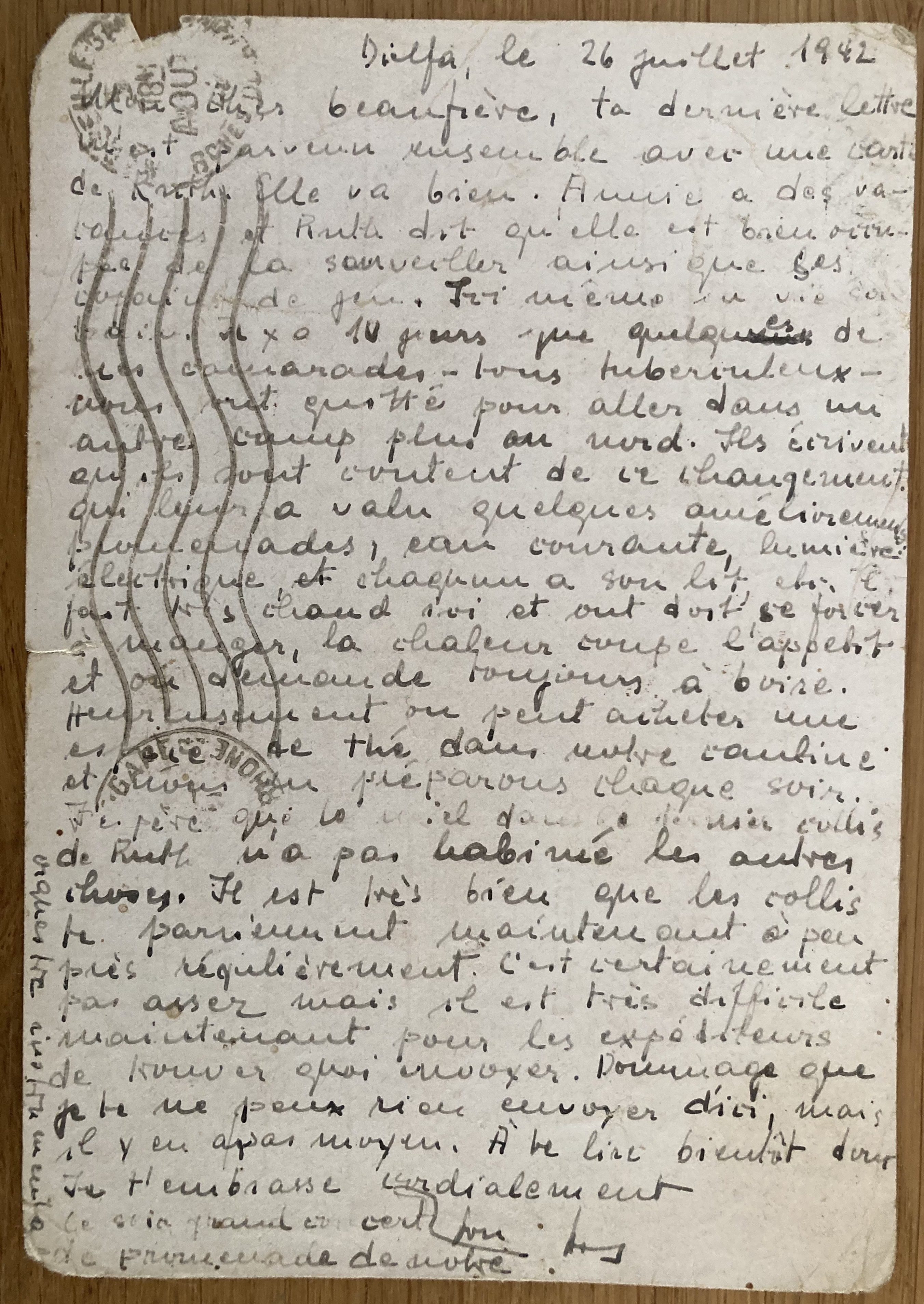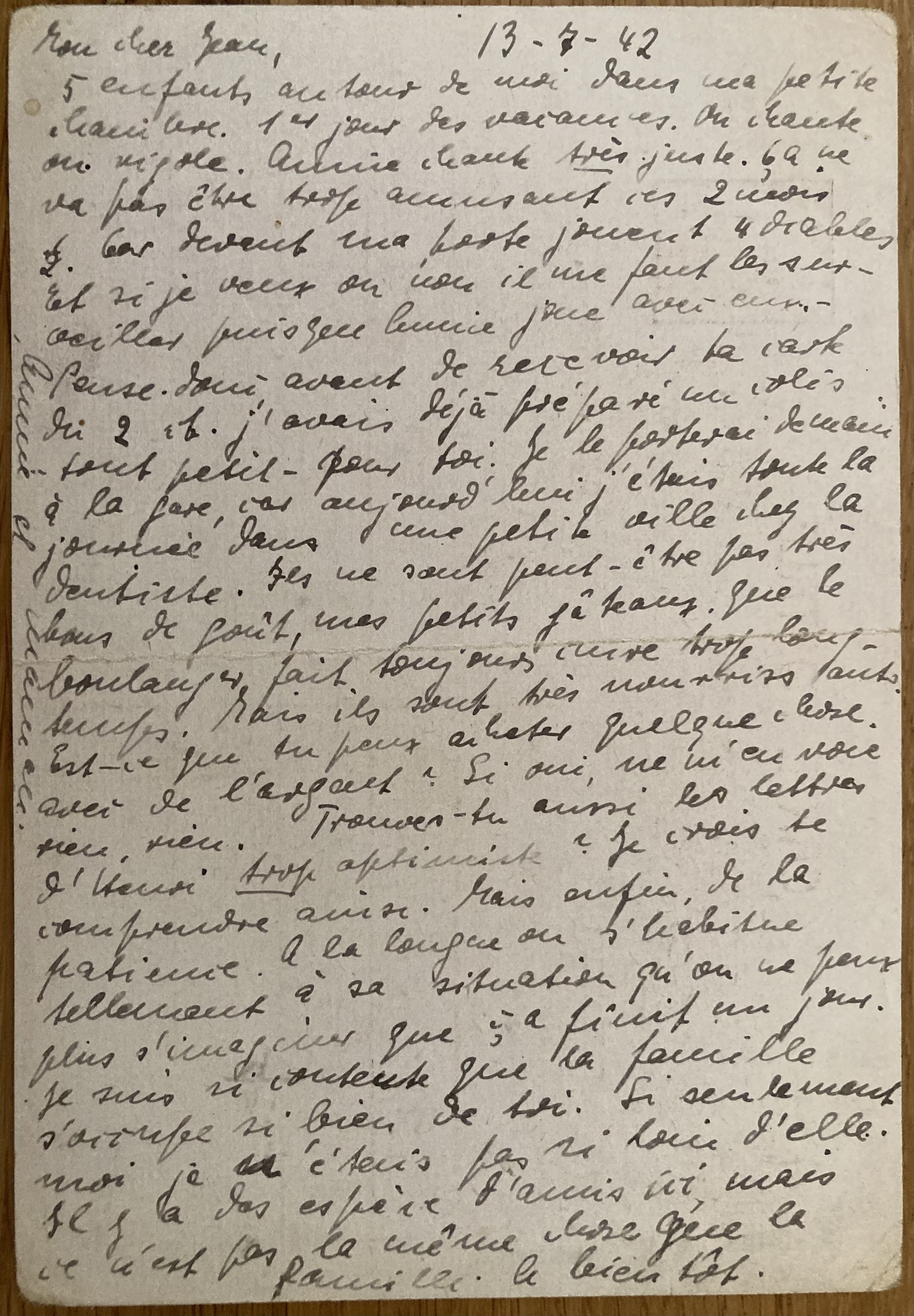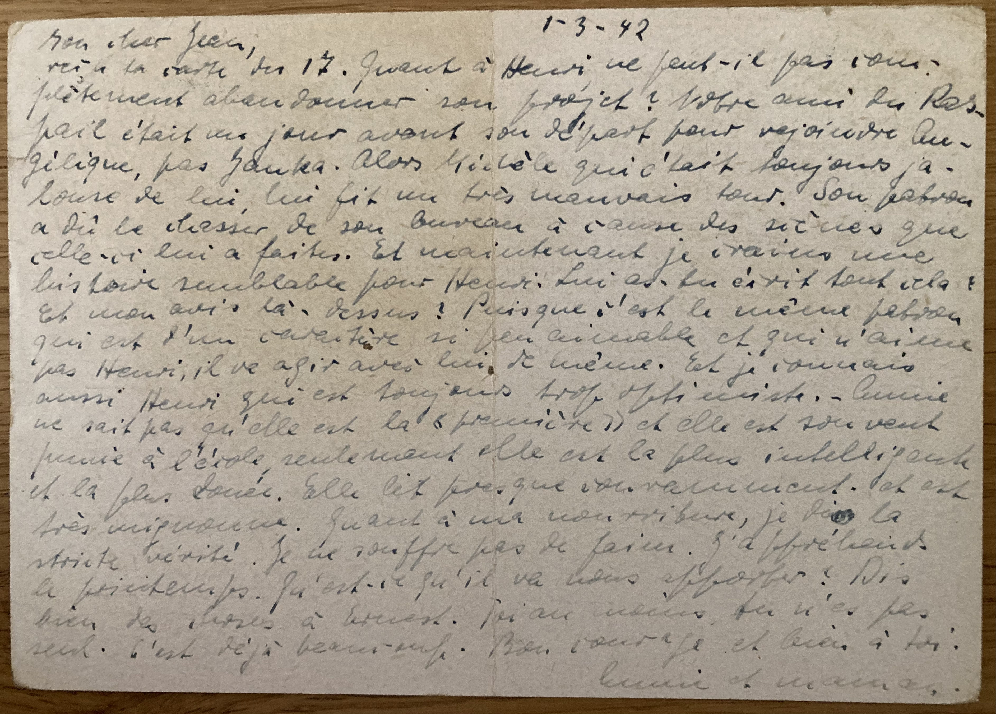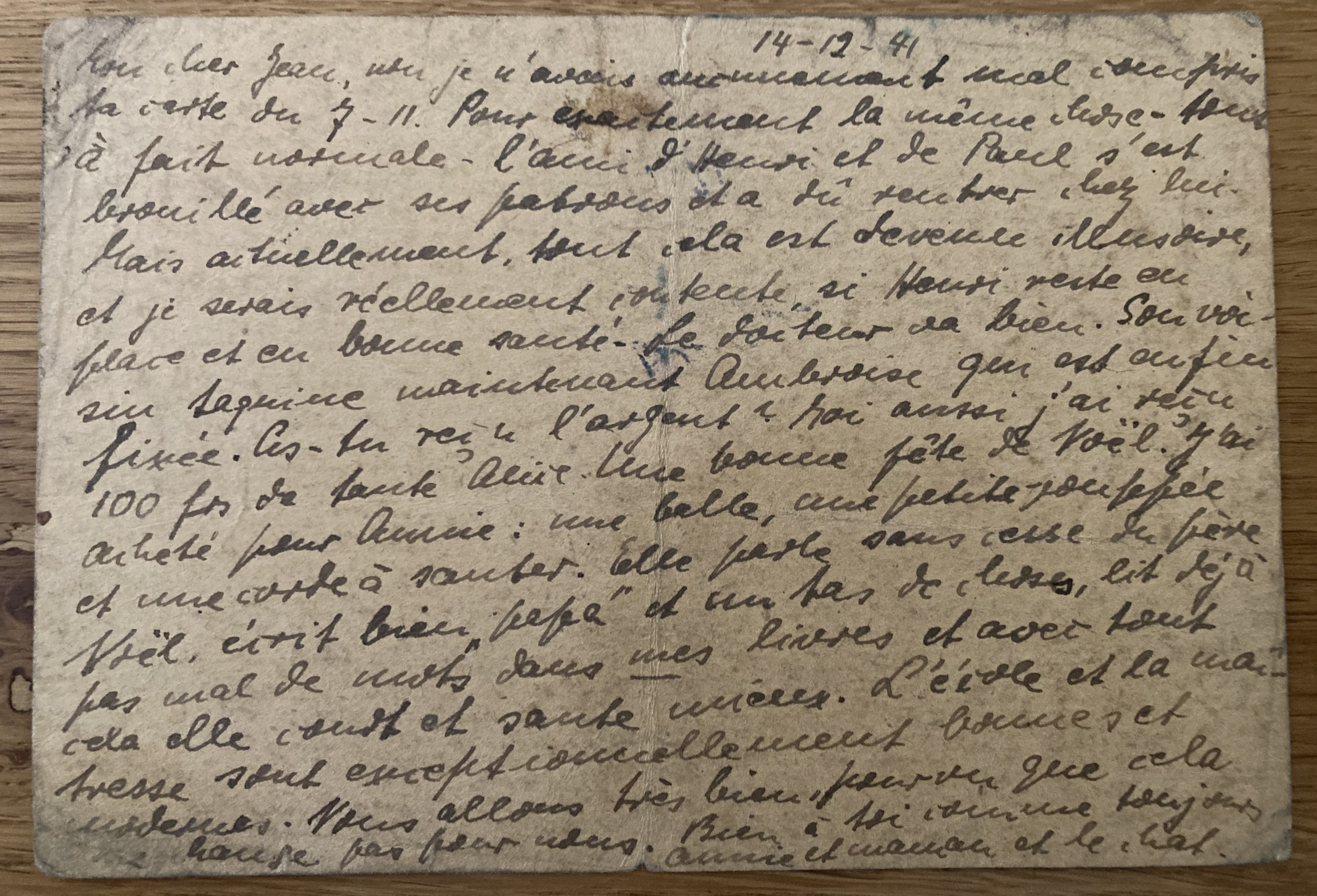 Lettre à Paul d’Anja Schaul du 11 décembre 1942, carte récupérée auprès de Mademoiselle LE MOINE