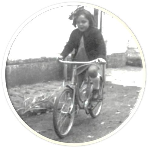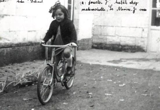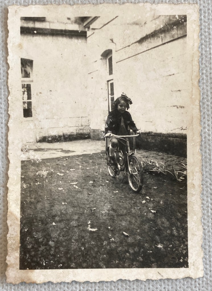Photographie originale Anja sur son « petit vélo bleu » 19 novembre 1942 [Collection famille RENAUD]