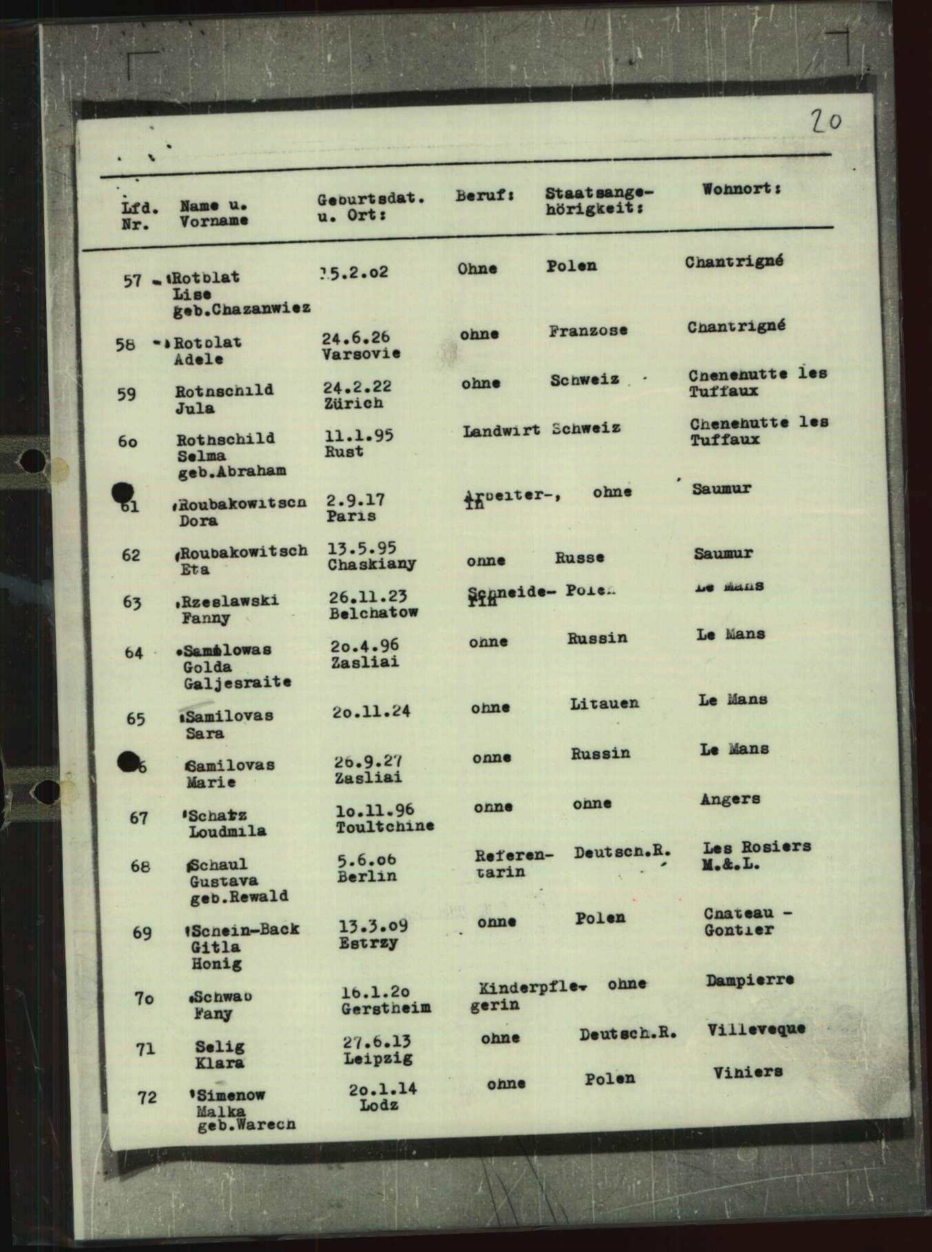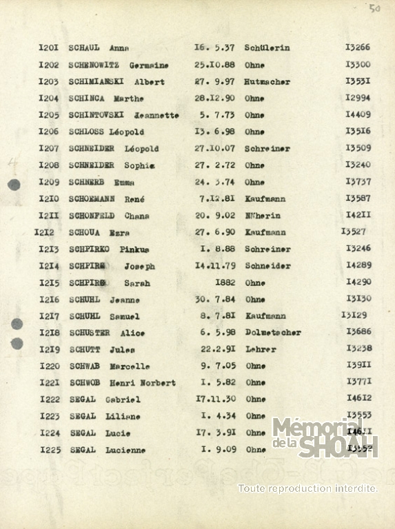 Liste des Juifs Etrangers refoulés [ADML 37W10]