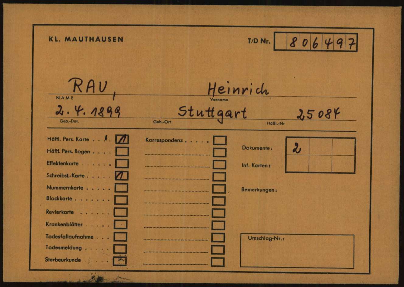 Personal Files (male) – Concentration Camp Mauthausen [Its Bad Arolsen, en ligne]