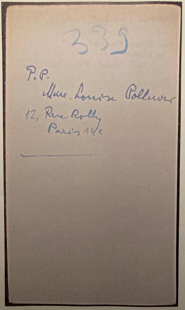 1 – Louise = Louise POLLNOW née LEHMANN née le 15 mai 1907 mariée avec Hans Moritz (Jean Maurice) POLLNOW né le 07 mars 1902 à Koenigsberg (Allemagne). Louise est arrivée entre 1933 et 1939 en France (recherche en cours). C’est la grande amie de Ruth et elle a déjà rencontré Hans à Paris. Elle va accueilir Anja chez elle à Paris à partir de septembre 1937 et ceci pendant 6 mois jusqu’en février 1939 au moment où Ruth est en Espagne. Elle va s’occuper d’Anja comme de sa propre fille, correspondre très régulièrement avec Ruth en 1939 jusqu’en 1942 puis avec Melle Lemoine, l’institutrice d’Anja, y compris après-guerre. Elle donnera naissance à un petit garçon Dany (Daniel Lucien Bernard) le 24 février 1942 à Paris. Vraisemblablement en 1939, la famille POLLNOW quitte Paris pour s’intaller au Houga (département du Gers) à l’Est de Mont-de-Marsan et à 80 kms de Pau. Jean POLLNOW, le mari de Louise: a entamé et réussi des études de philosophie et de médecine, docteur en médecine en 1927, travaille dans différentes cliniques à Berlin, publie de nombreux articles dans les domaines de la psychiatrie et pédopsychiatrie, conceptualise et identifie les désordres psychiques des enfants (hyperactivité, inattention, contrôle des impulsions, désordre…) qui prendra le nom de syndrome Kramer-Pollnow. Il est licencié de sa clinique le 31 mars 1933 suite aux lois d’exclusion des Juifs d’exercer toute profession médicale et émigre en France en mai 1933. Divorcé de son premier mariage, se remarie avec Louise LEHMANN entre 1933 et 1939. Naturalisé français. Jean est devenu actif au sein de la Jewish Children’s Charity, qui avait son siège à Paris depuis 1933. Il était particulièrement intéressé à aider les enfants juifs qui avaient été traumatisés par le pogrom du 09 novembre 1938 en Allemagne et qui avaient finalement fui en France d’Allemagne et d’Autriche, laissant leurs parents derrière eux. Il a d’abord combattu avec l’armée française contre l’invasion allemande, mais a été démobilisé suite à la défaite militaire de 1940. Il a refusé une offre d’aller aux États-Unis, car il «ne voulait pas déserter la France». En février 1943, Hans Pollnow est arrêté dans la ville de Pau au pied des Pyrénées où il rend visite à un ami actif dans le mouvement de résistance. En transit par plusieurs camps d’internement en France et en Allemagne, il arriva par la suite au camp de concentration de Mauthausen le 27 août 1943. La vie de Hans Pollnow prit fin le 21 octobre 1943, abattu par ses gardes allemands.