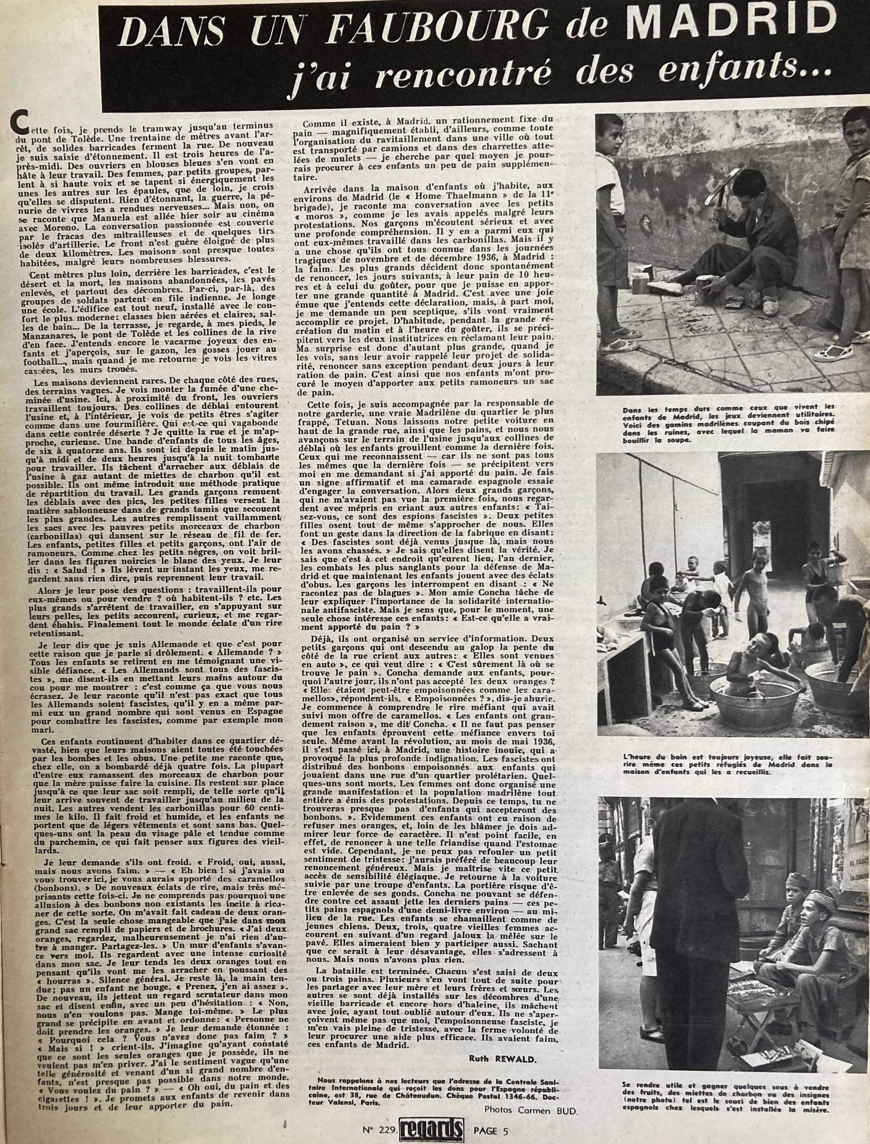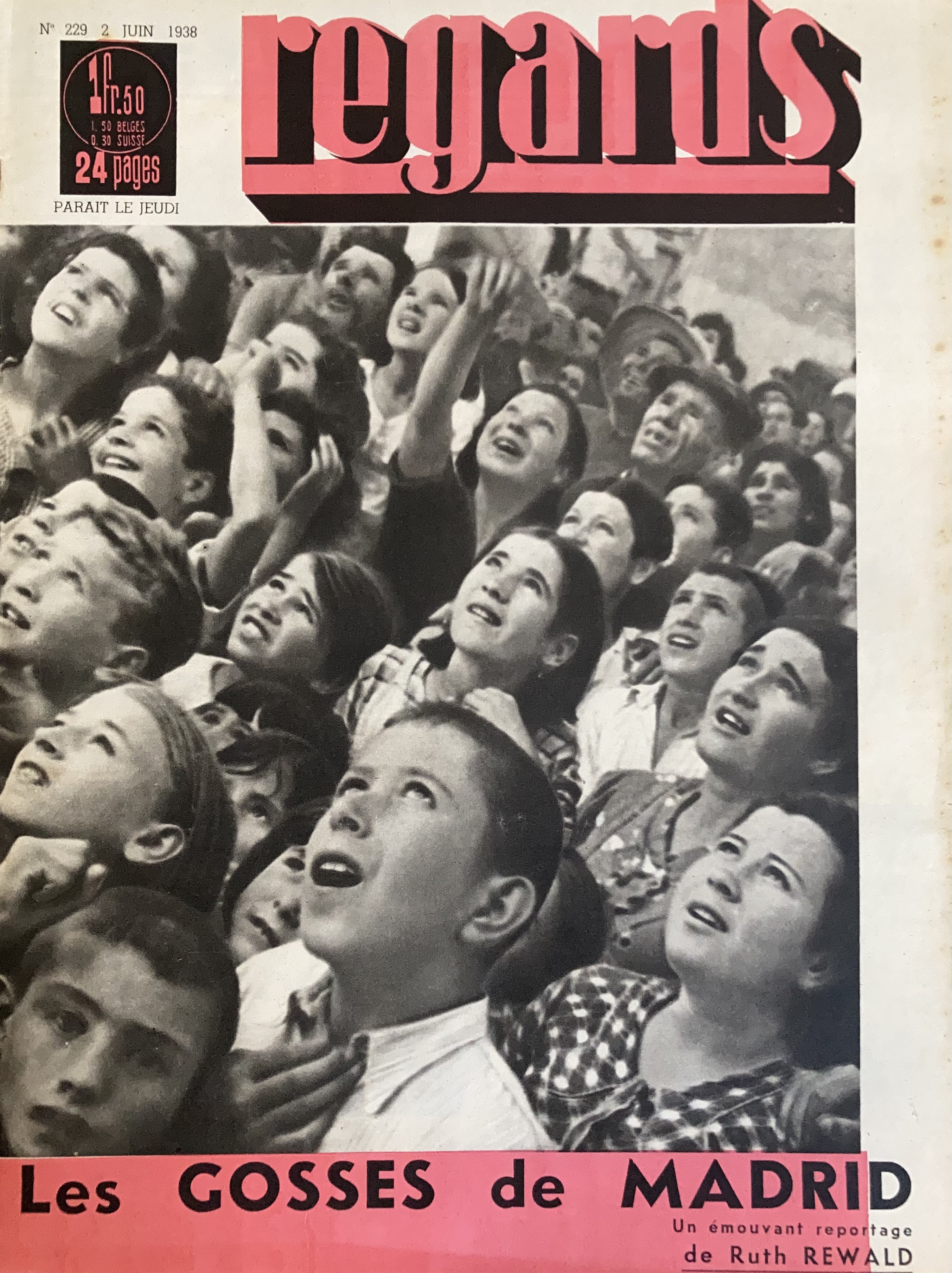 Première de couverture et article de Ruth REWALD dans la revue Regards du 02 juin 1938. La revue est un magazine illustré du Parti Communiste Français