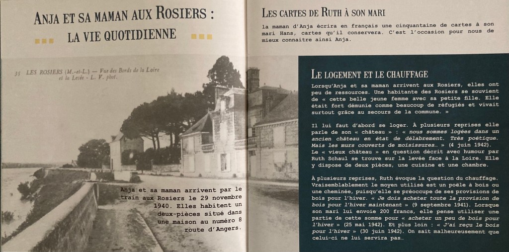 Ruth et Anja résident dans un premier temps avec Paul et Klara SCHABLIN, deux réfugiés Juifs d’origine tchèque (lieu indéterminé) puis louent une petite maison située sur la levée en bord de Loire auprès de Madame GOUIN. Ruth par ailleurs dispose d’un potager pour subvenir aux besoins alimentaires.