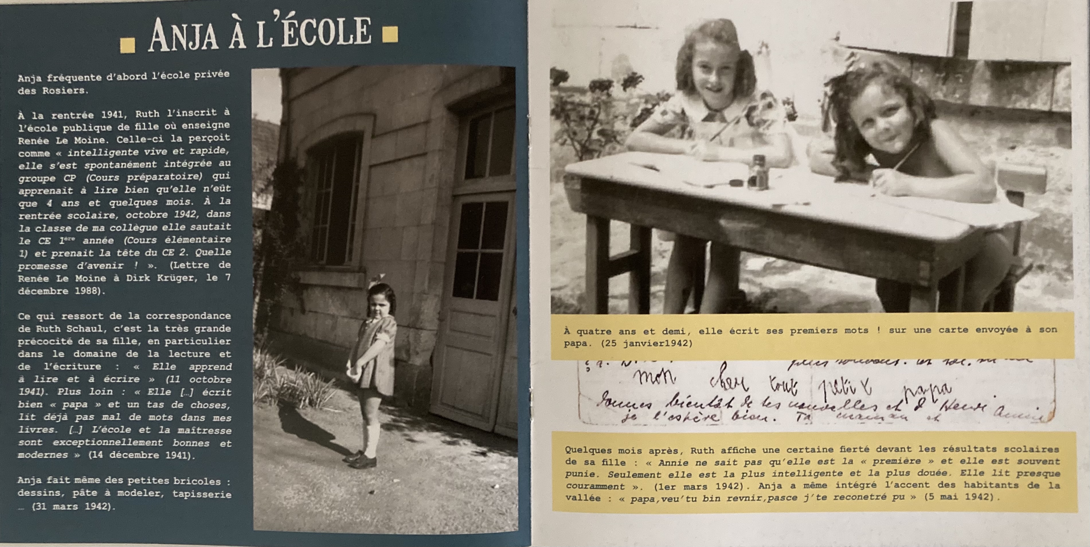 Au moment de l’arrestation de Ruth, les RENAUD continueront à correspondre avec les personnes qui ont pris en charge la petite Anja, en particulier l’institutrice, s’inquiétant de son sort et de savoir si elle ne manquait de rien.