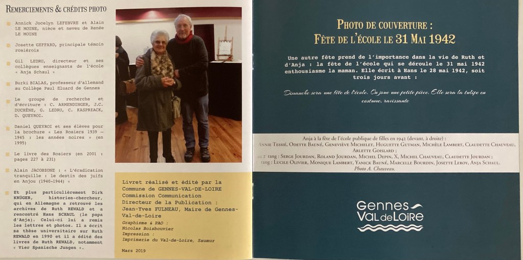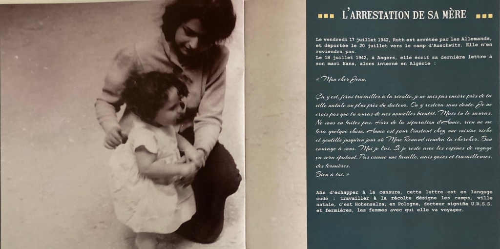 En contact jusqu’à leurs déportations Avec le début de la guerre, leur situation s’assombrit encore. En 1939, Hans est interné en raison de sa nationalité, alors que Ruth et Ajna sont accueillies chez Louis et Albertine Renaud à Sainte-Anne-de-Campbon (ancien nom de la commune avent 1980), où ils vont entretenir des relations amicales très fortes et sans préjugés. Contraintes de quitter la Loire-Atlantique, Anja et sa mère sont ensuite hébergées aux Rosiers-sur-Loire, dans le Maine-et-Loire , mais elles garderont le contact avec les Renaud. Anja, après l’arrestation de sa mère, reviendra meêm passer plusieurs fois quelques jours de vacances ici jusqu’à sa déportation à Auschwitz en 1944, d’où elle ne reviendra jamais.