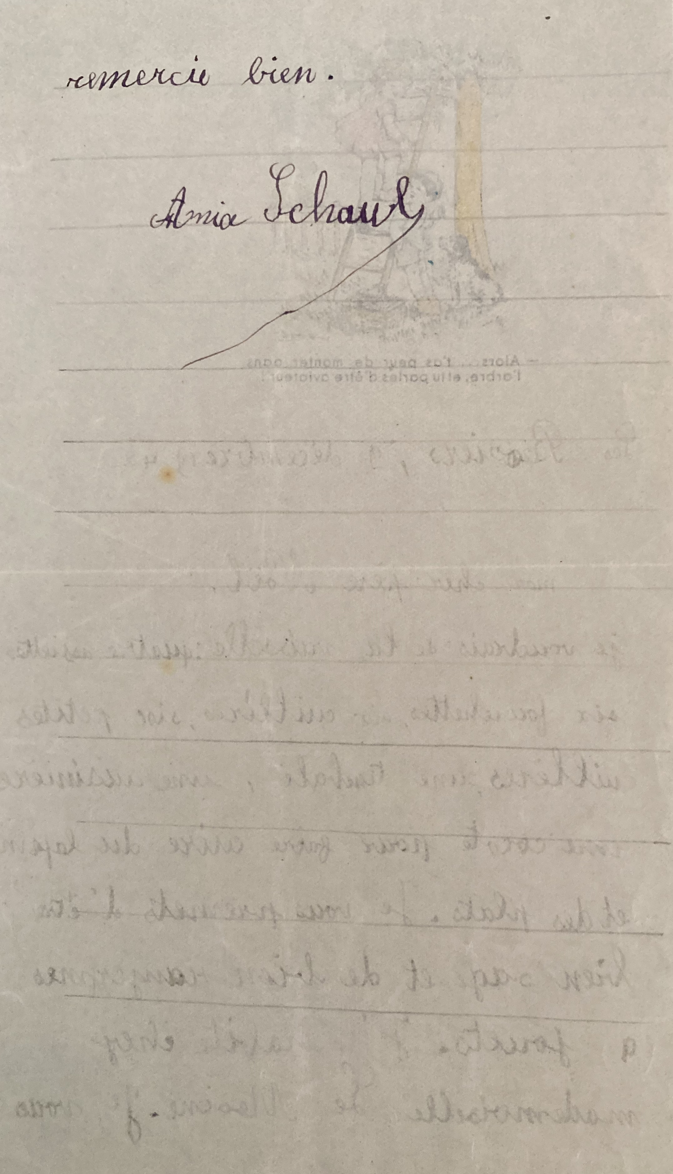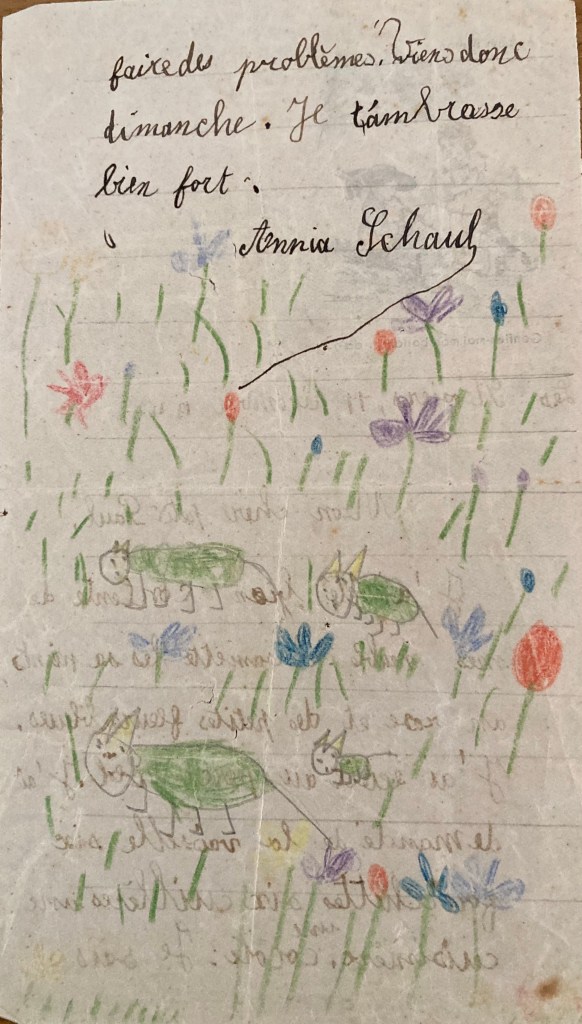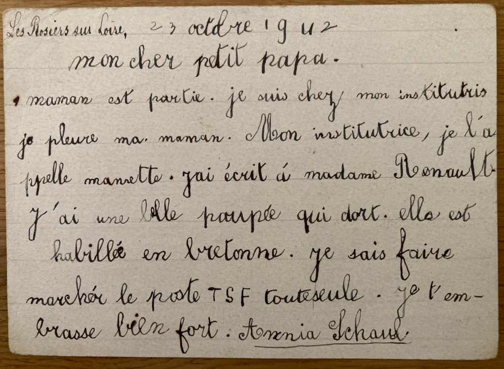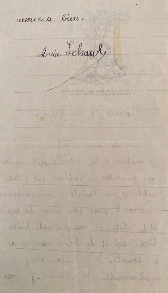 Le même jour, Melle LEMOINE écrit également une carte à Hans SCHAUL lui donnant des nouvelles d’Anja.