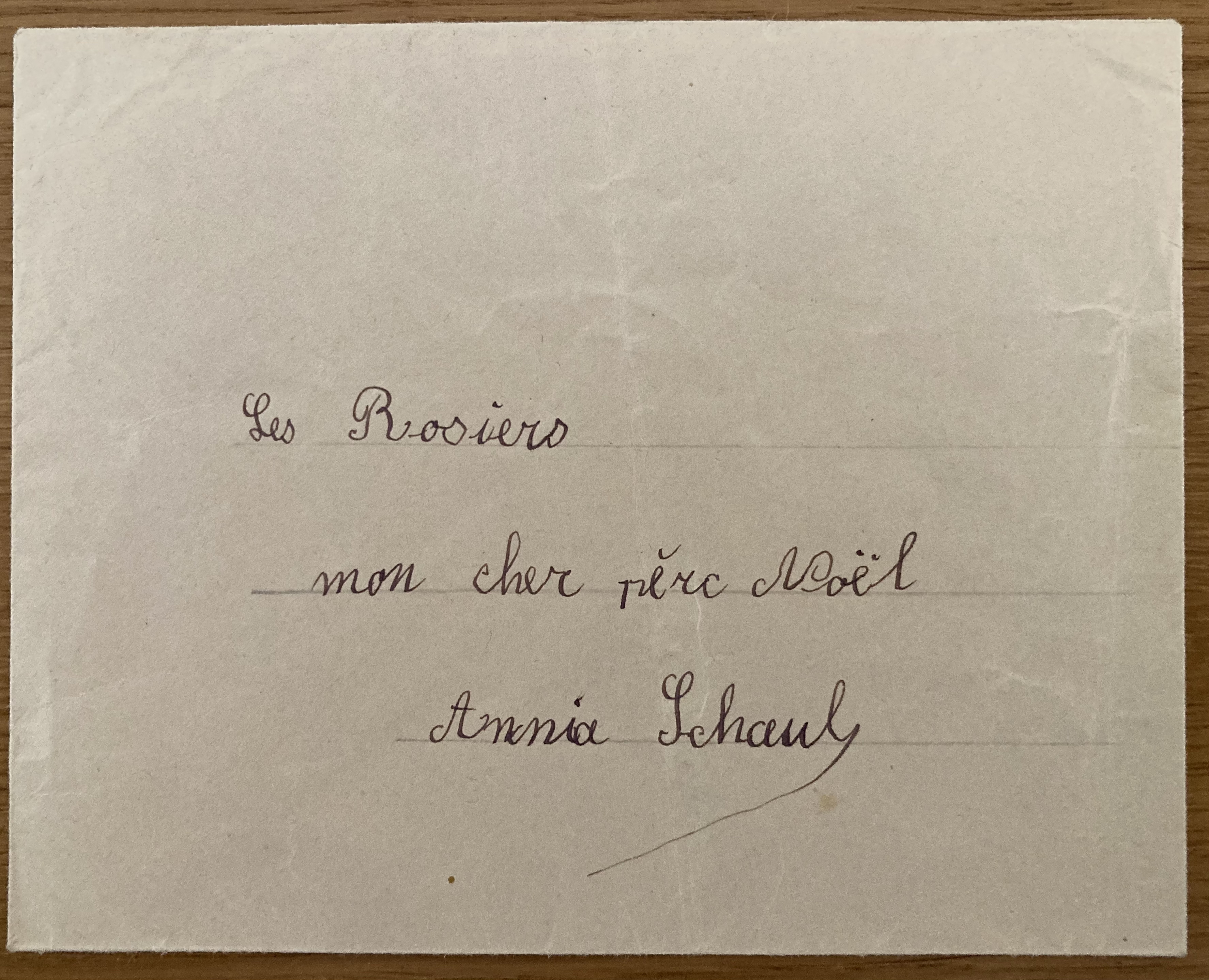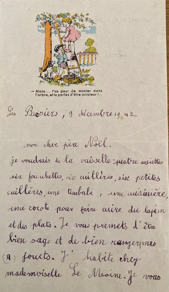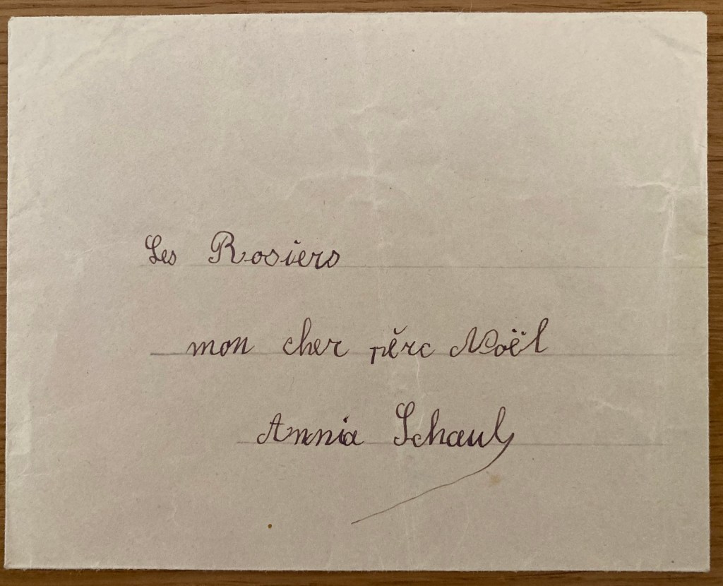Lettre au Père Noël d’Anja SCHAUL du 09 décembre 1942. Cette lettre a été récupérée auprès de Melle Renée LE MOINE.