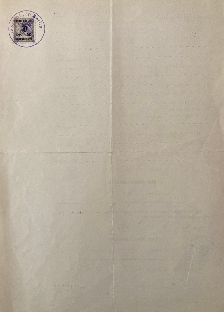 Attestation de dépôt de déclaration de nationalité [Dirk KRÜGER, collection particulière]