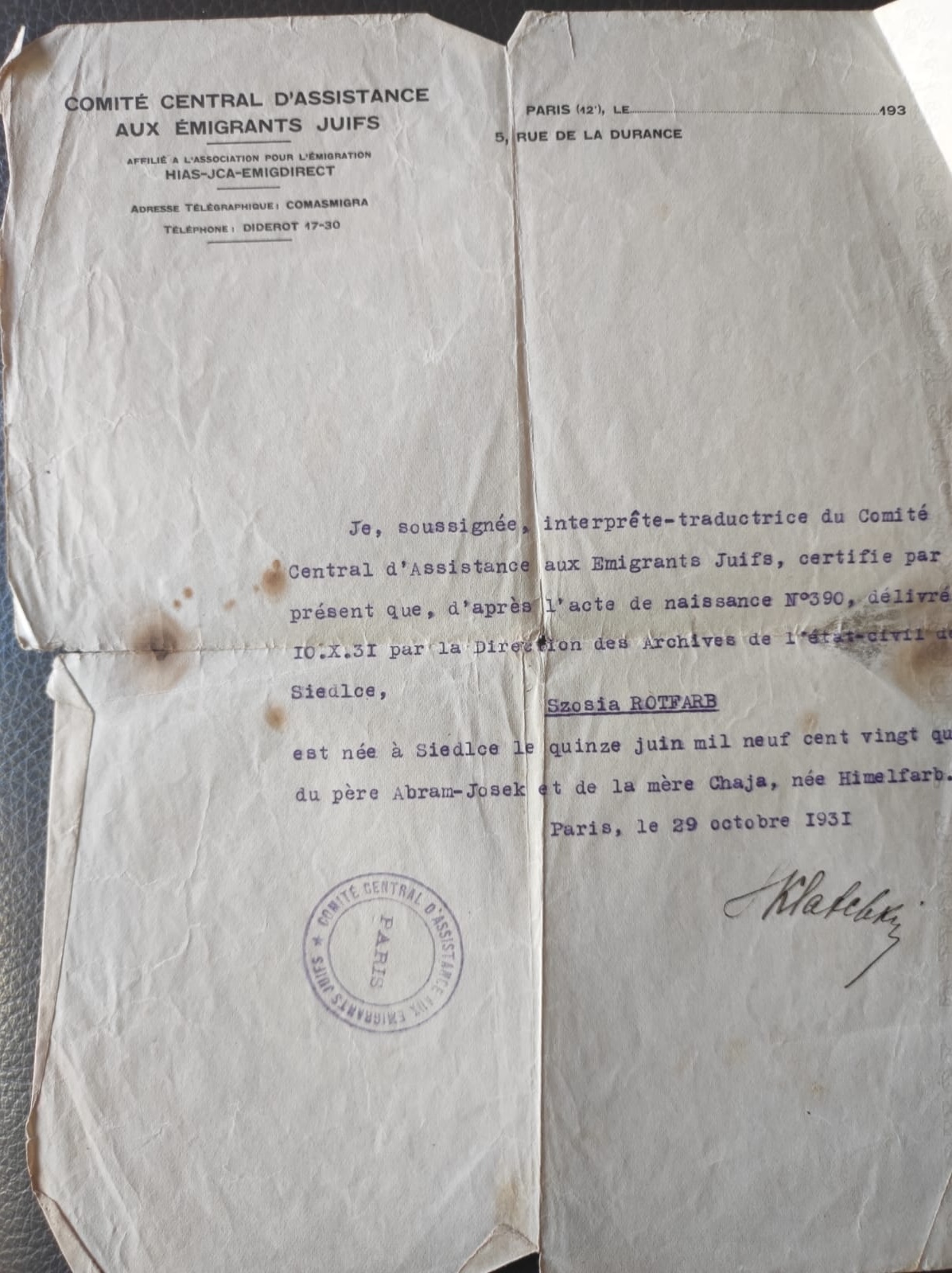 ROTFARB Sabine (Szosia) (NR) [Abram, Chaja, Wolf, Rywka, Dawid, Fejga, Izaak et Michel]