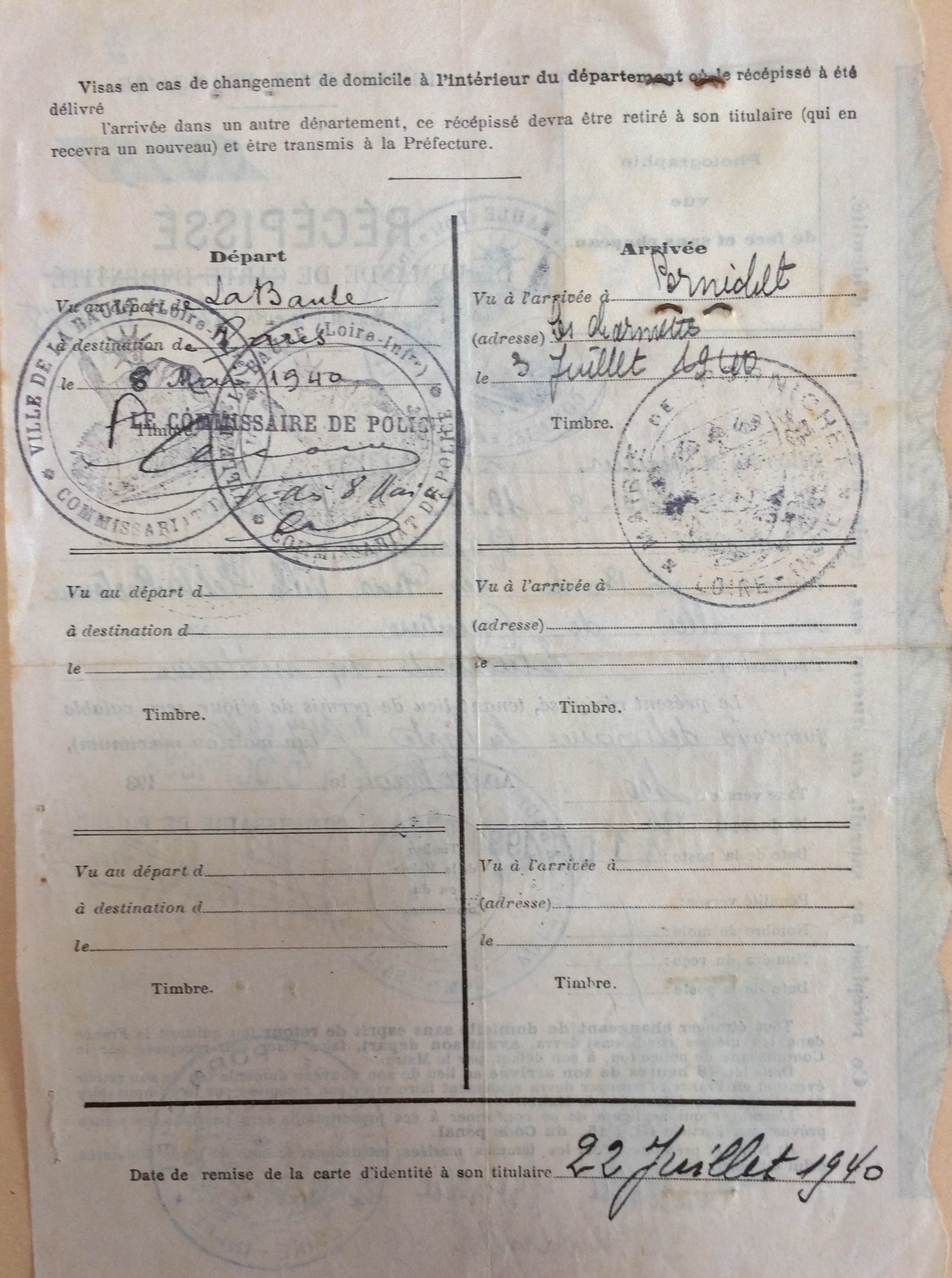 Il quitte Pornichet pour Paris le 05 janvier 1941 au 335, rue Lecourbe dans le 15ème arrondissement.