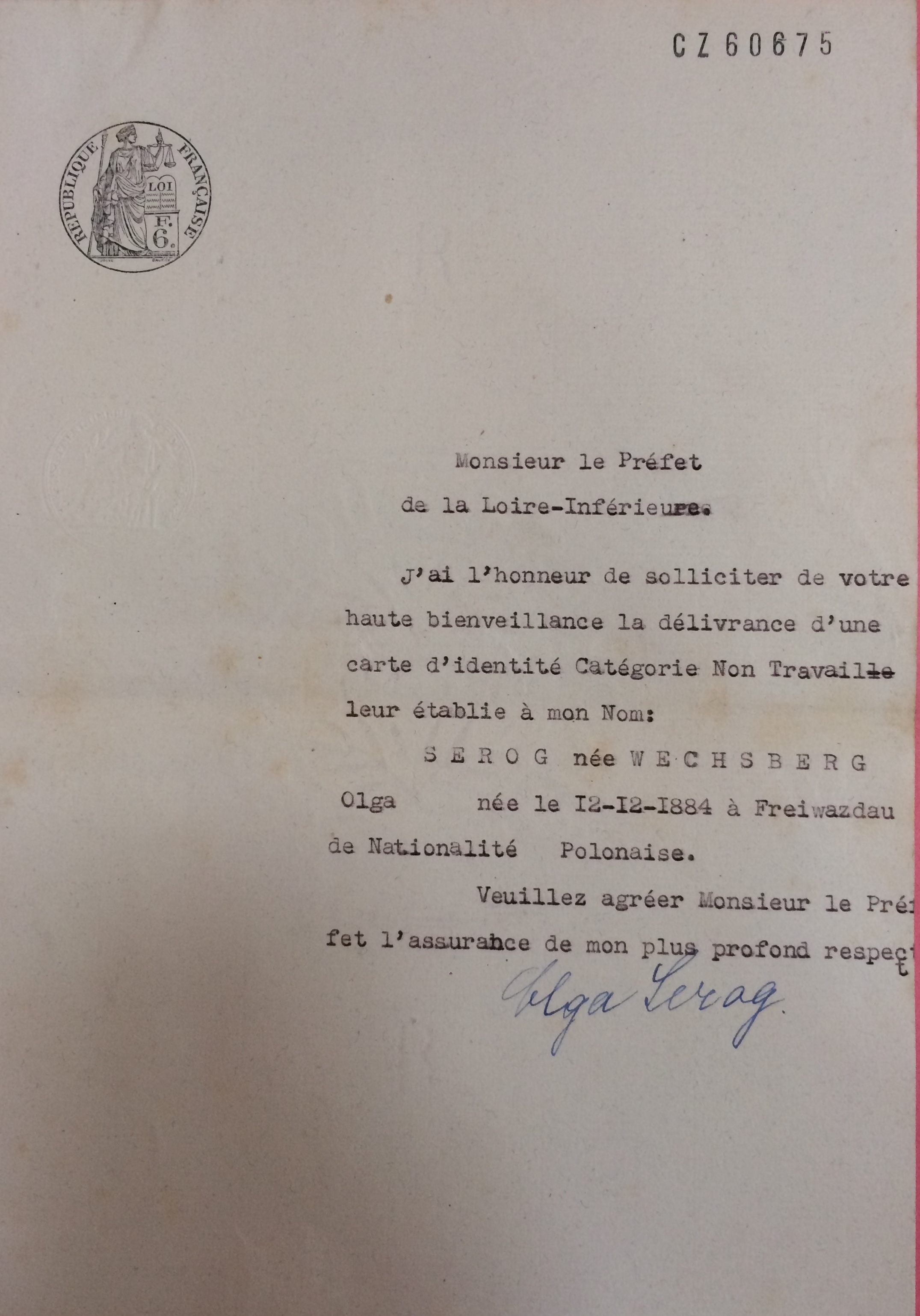 Dossier d’étranger d’Olga SEROG [ADLA 4M921]