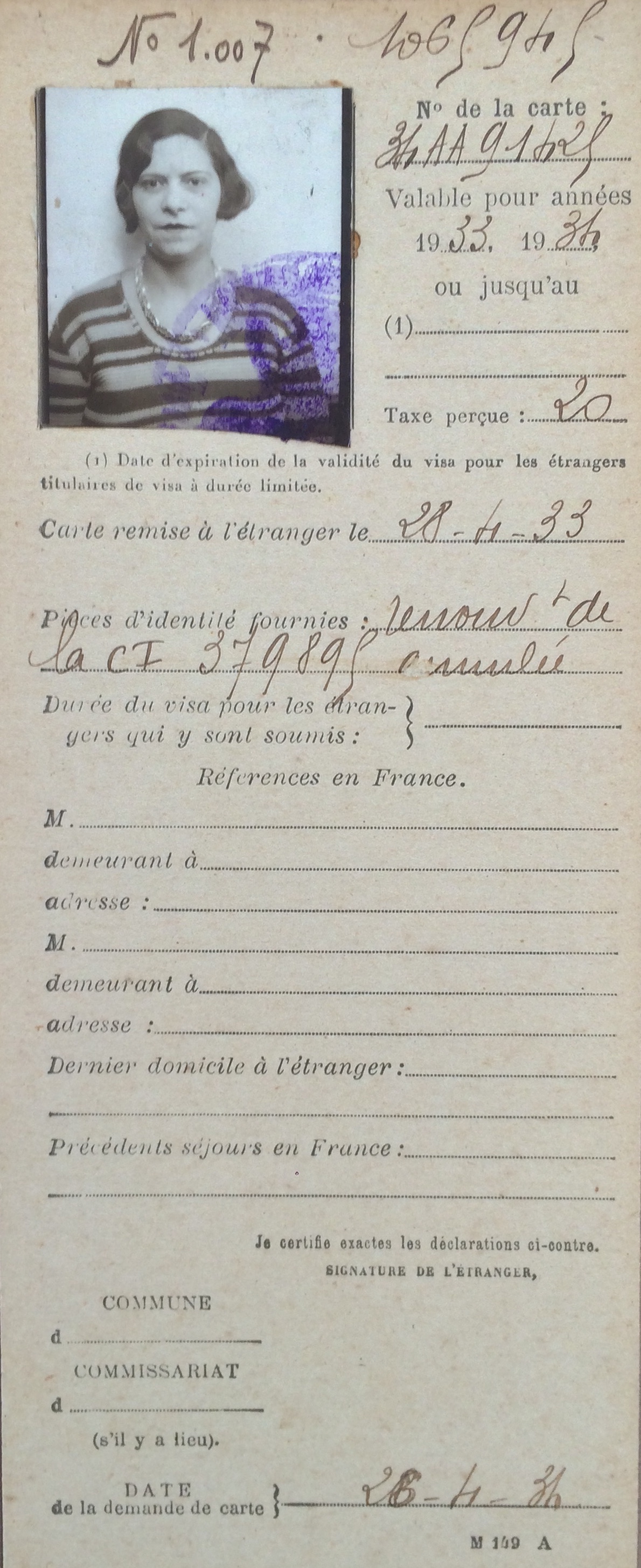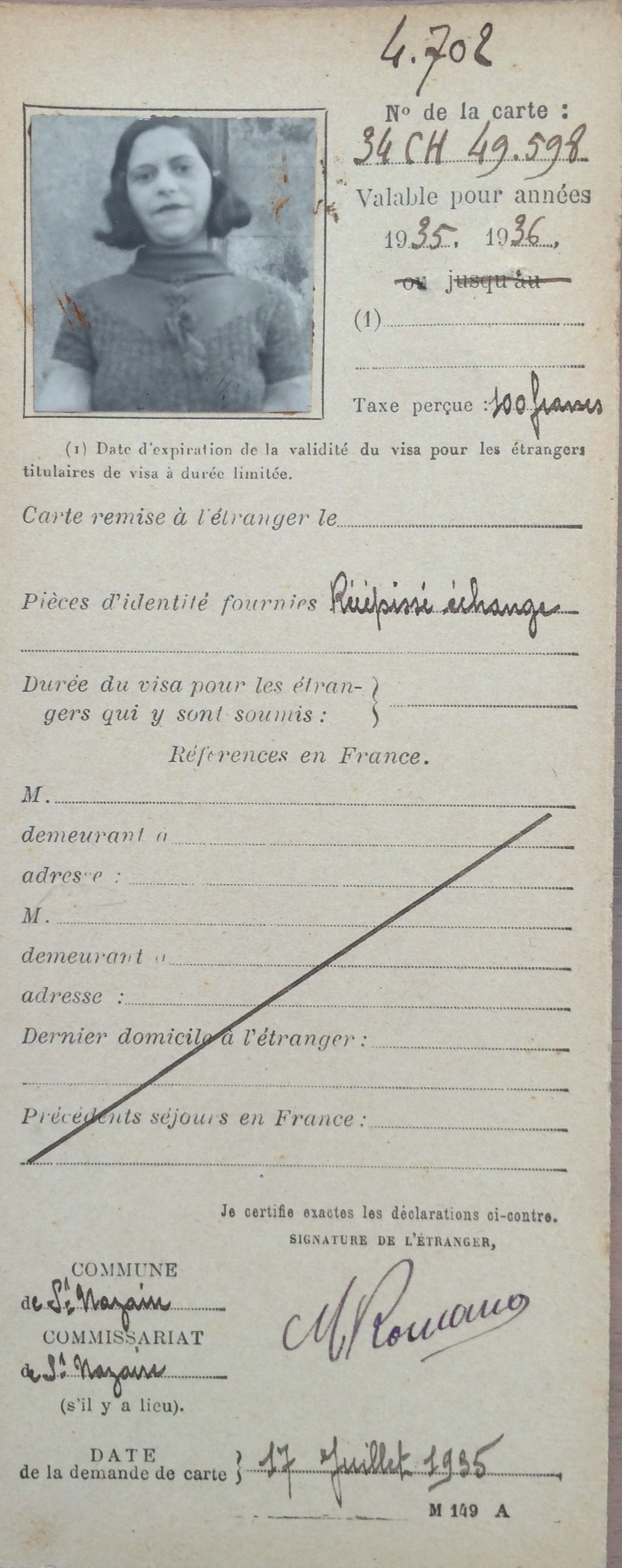 Demandes de cartes d’identité pour étrangers 1934, 1935, 1937 de Mathilde ROMANO [ADLA 4M715]