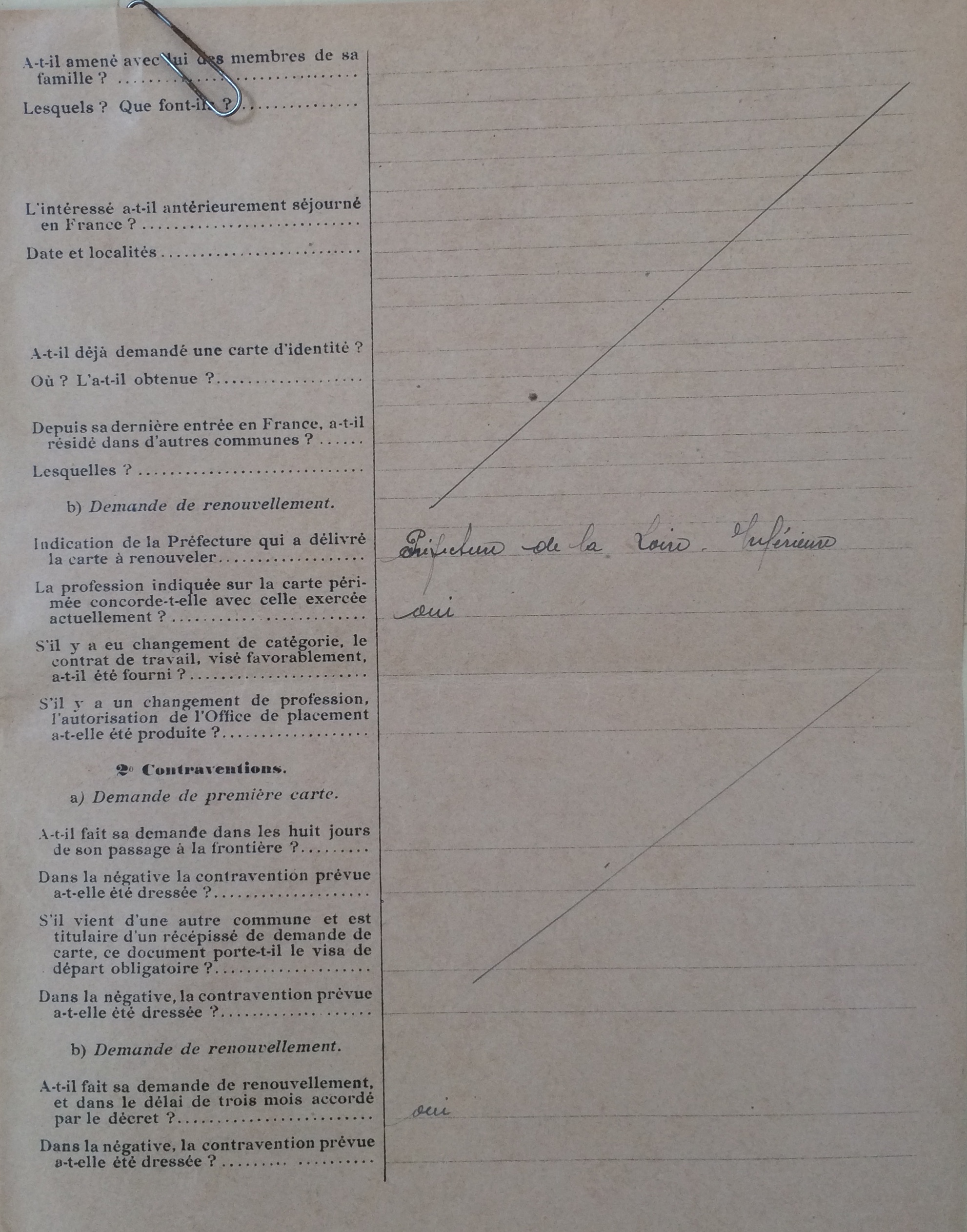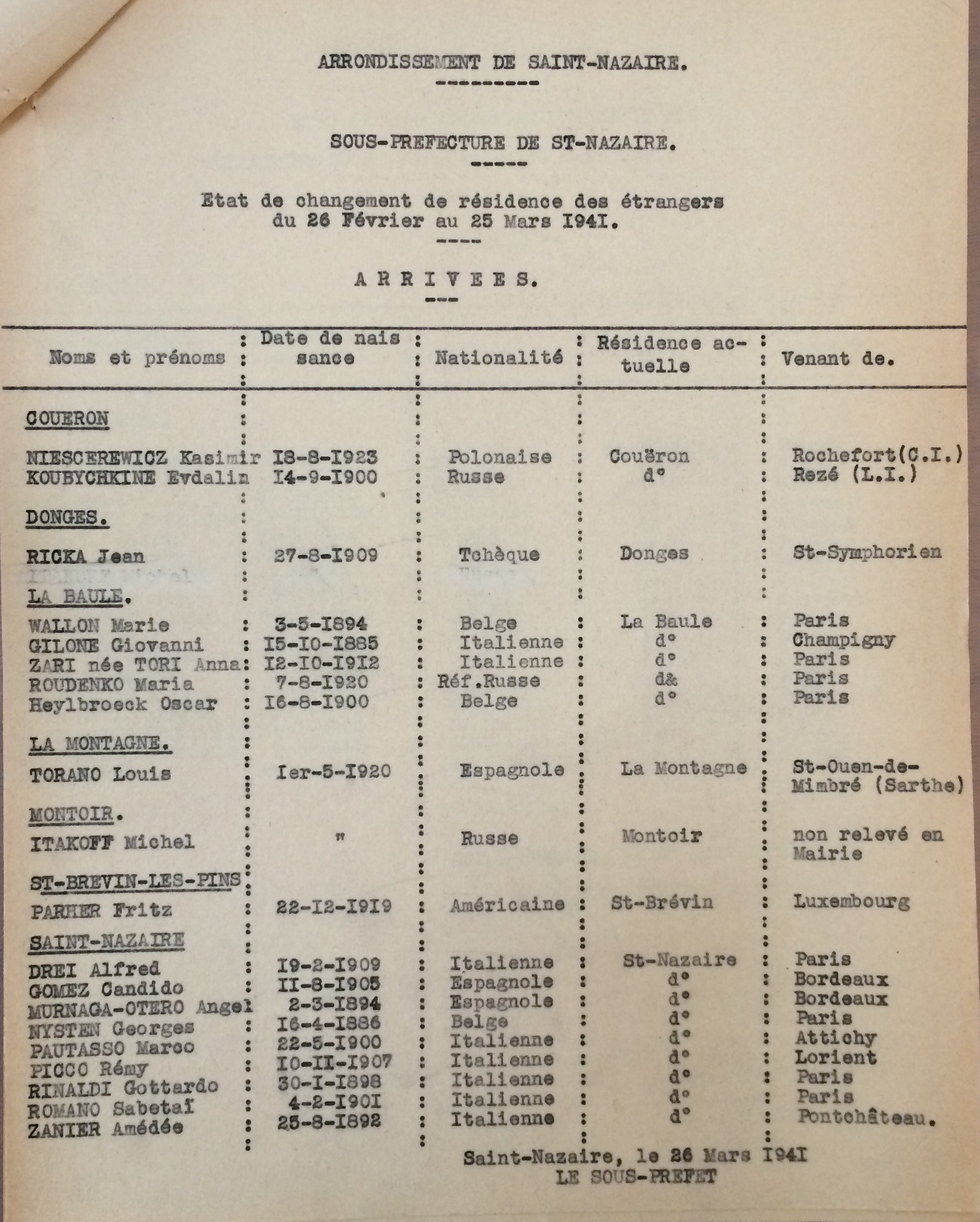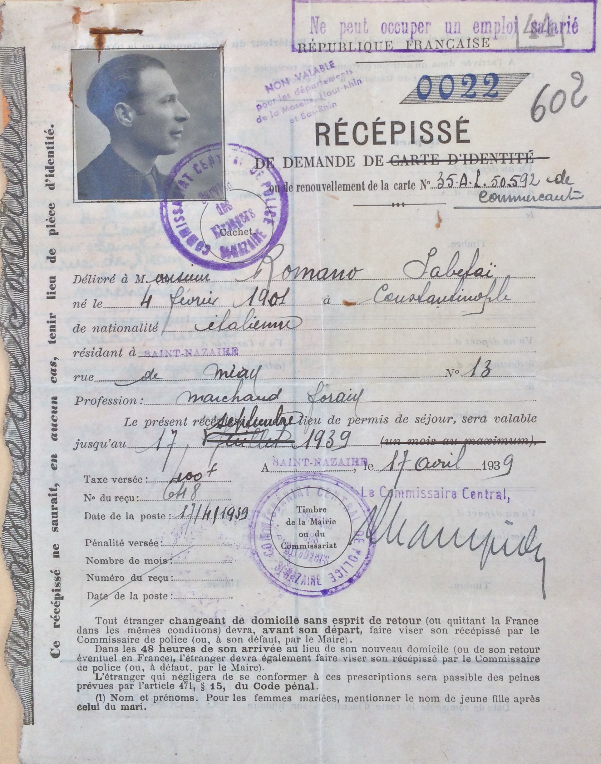 Régulièrement contrôlé en tant qu’étranger sur le territoire national, Sabetaï a été contrôlé dans le train entre Angers et Nantes le 25 avril 1940.