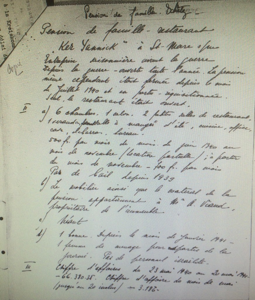 Puis le 1er juillet 1936, Ludmilla tient une pension de famille à Saint-Marc Ker Yannick pension créée en 1920 mais qui avait fait faillite en 1935. La pension est la propriété de Monsieur Arsène VIAUD, 35, rue de la Trinité à Saint-Nazaire.