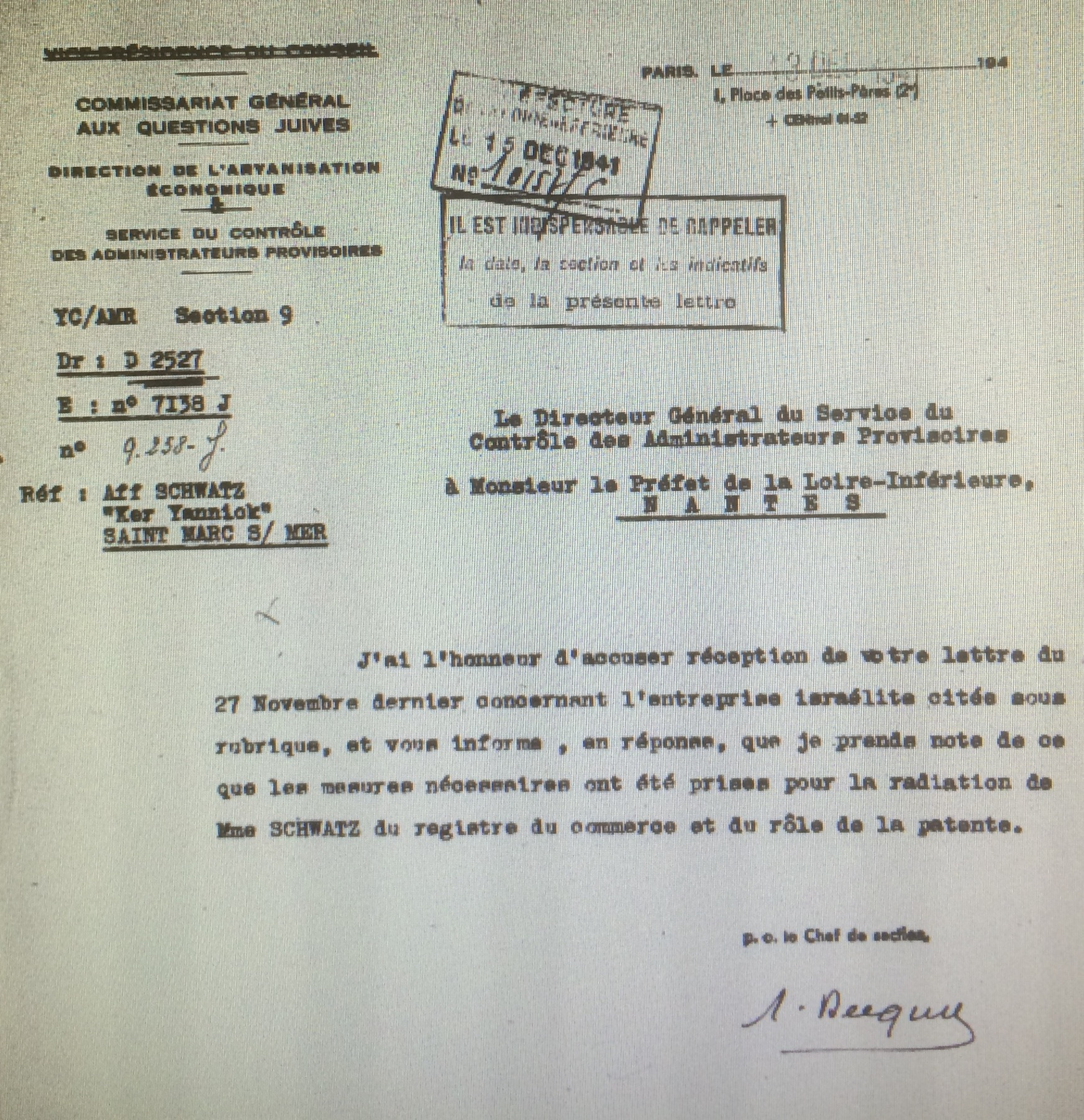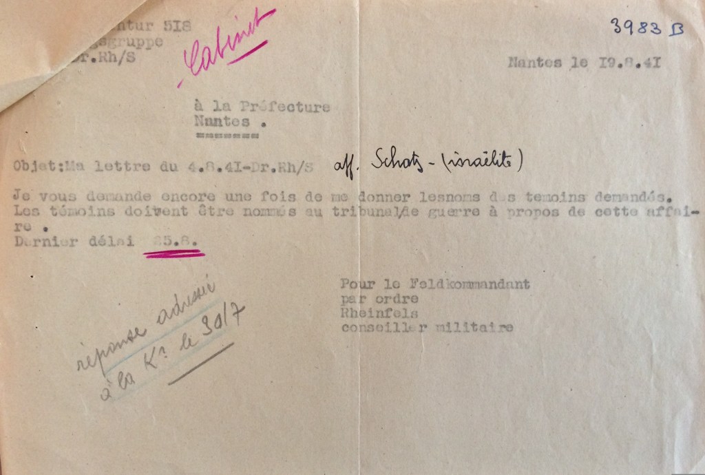 ![Lettre du Service de Contrôle des Administrateurs Provisoires à la Préfecture de Nantes du 13 décembre 1941 [AN AJ/38/4598 dossier n°2527]](https://shoahpresquile.com/wp-content/uploads/2019/01/20schatz13121941.jpg)