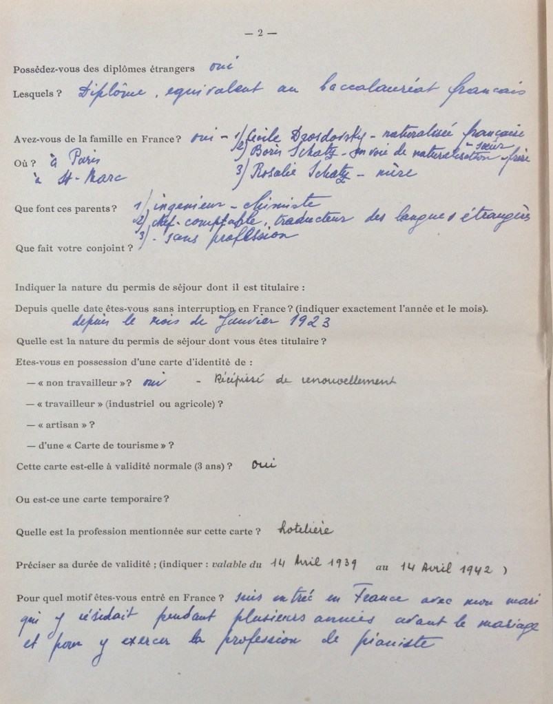Dossier d’étranger de Ludmilla SCHATZ [ADLA 4M896]