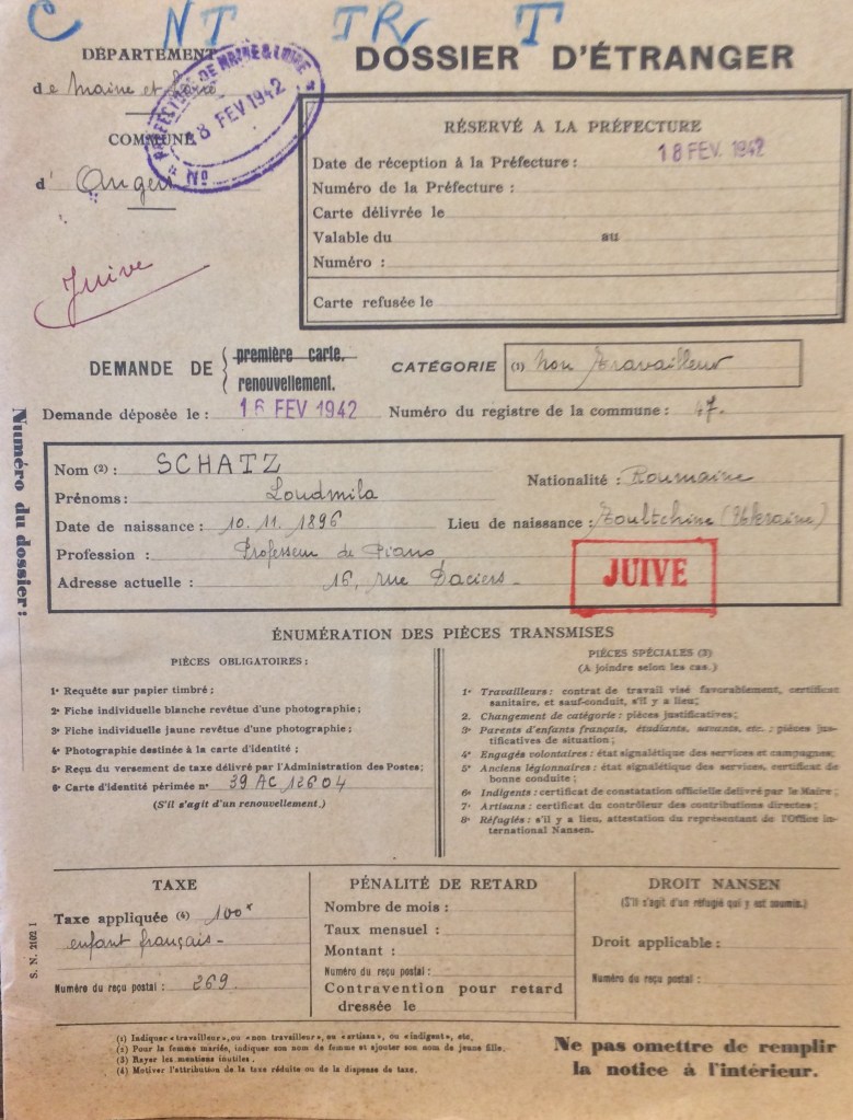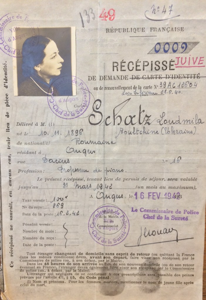 Ludmilla va se déplacer avec sa famille vers la ville des Ponts-de-Cé dans le Maine-et-Loire. Puis habite à Angers, 16, rue Dacier le 03 décembre 1941. Pour subvenir à ses besoins, à celle de sa fille et sa mère, Ludmilla donne des leçons de piano à son domicile.