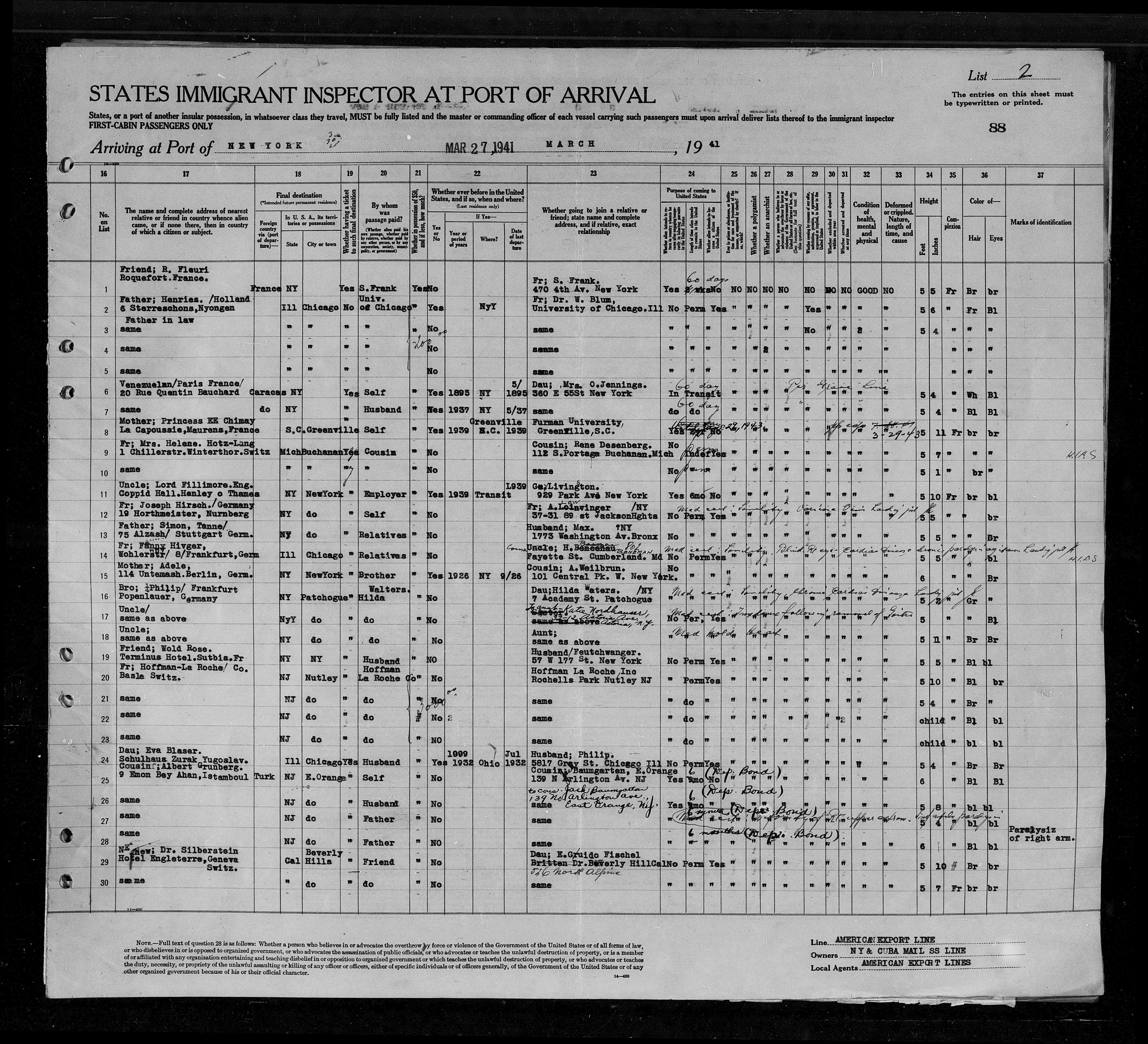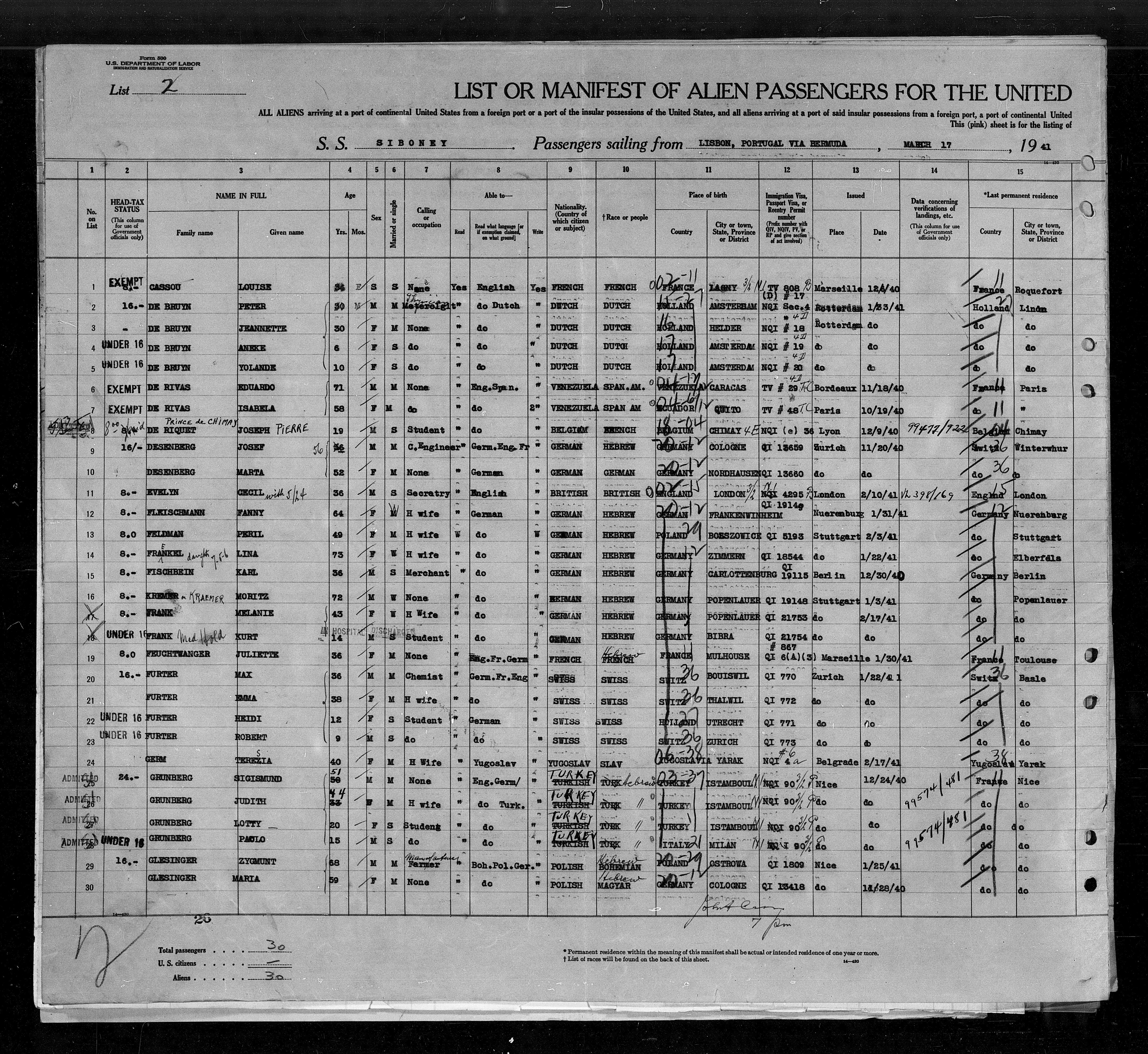 La famille quitte La Baule fin octobre 1940 pour destination inconnue, en fait Nice. Ils réussissent à prendre un paquebot via Le Portugal pour New-York sur le SS Siboney le 14 mars 1941 et arrivée à New-York le 24 mars 1941. Ils résident chez un cousin : BAUMGARTEN 139 N Arlington Avenue dans la ville de East orange dans le New Jersey.