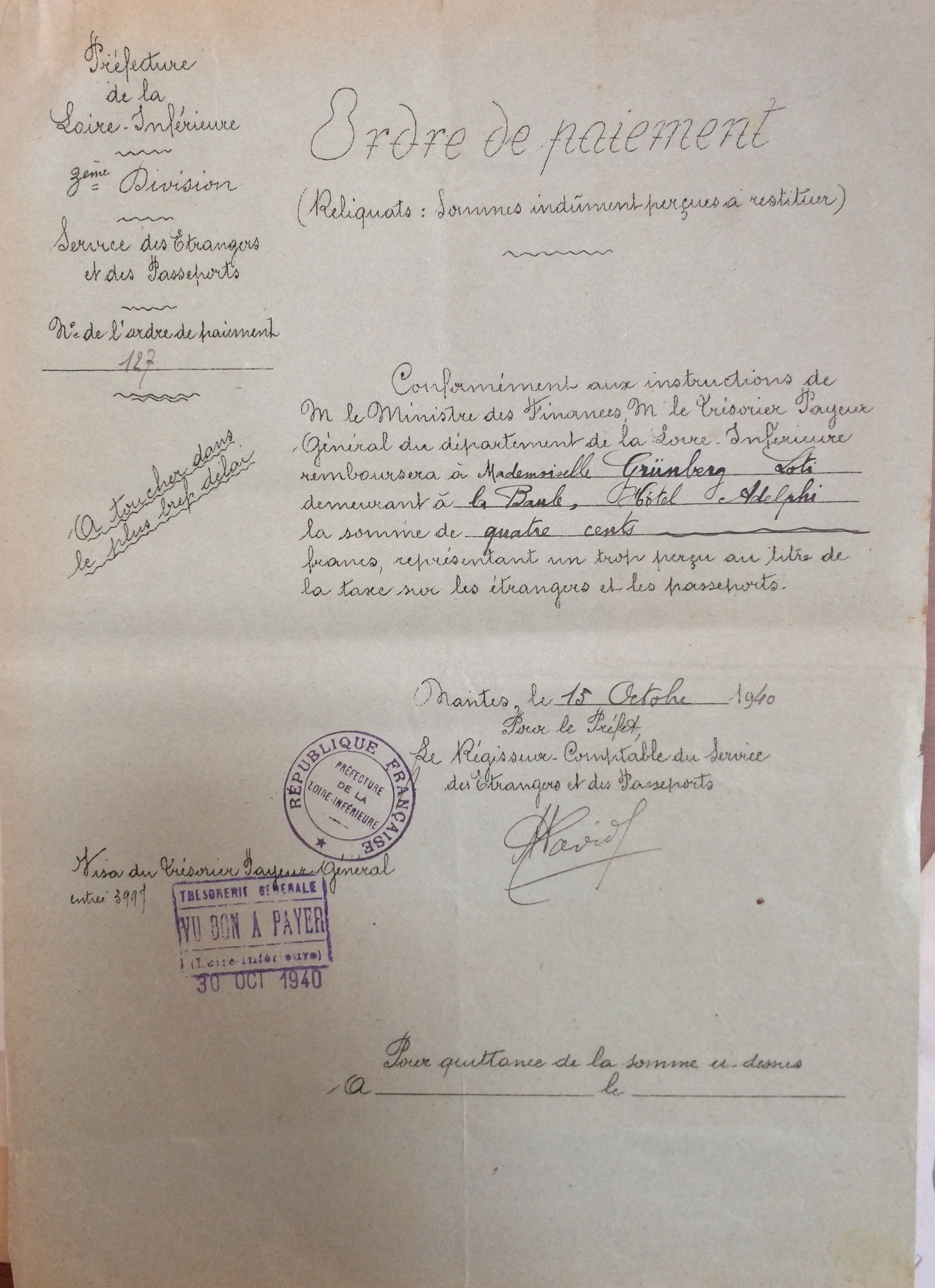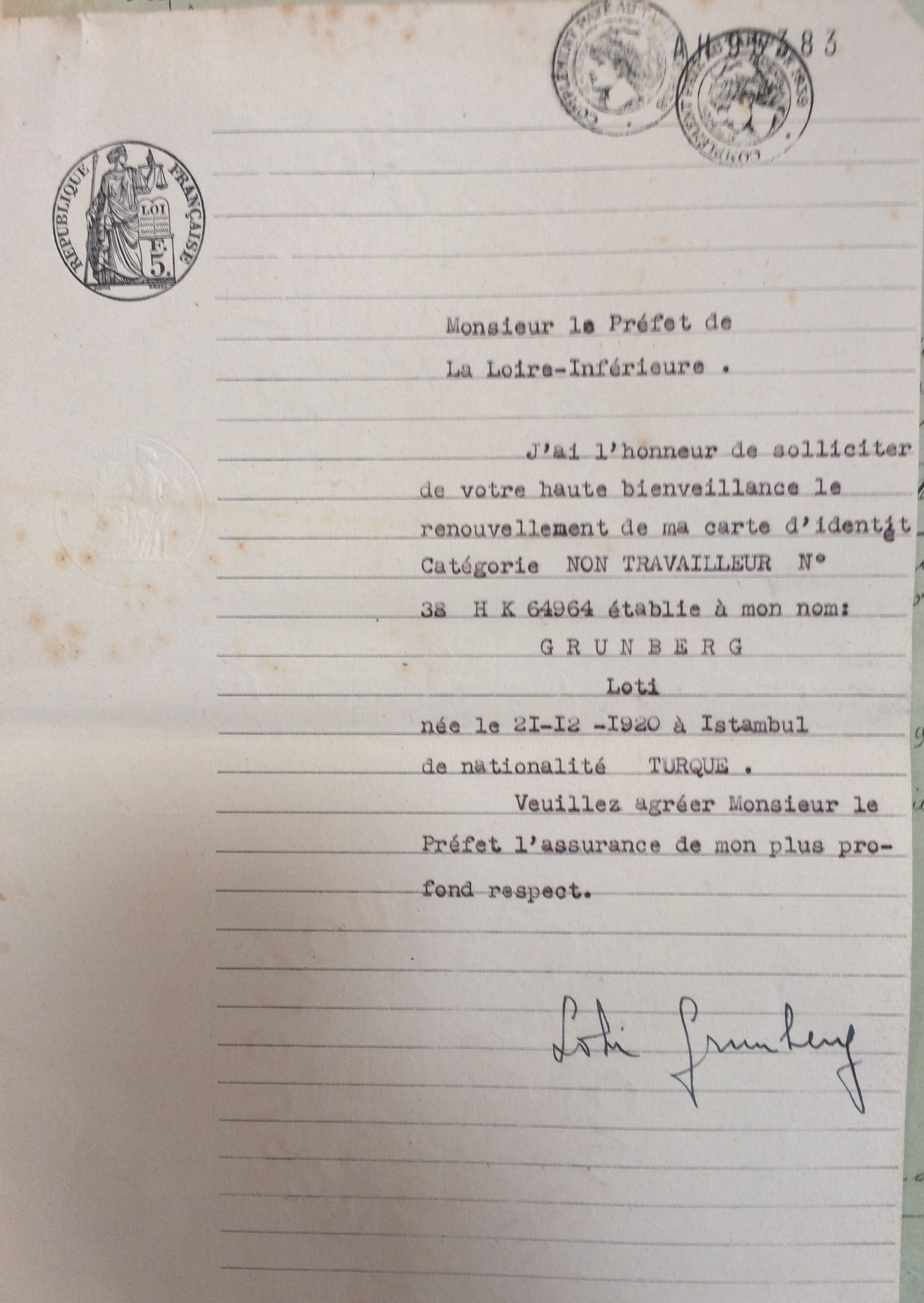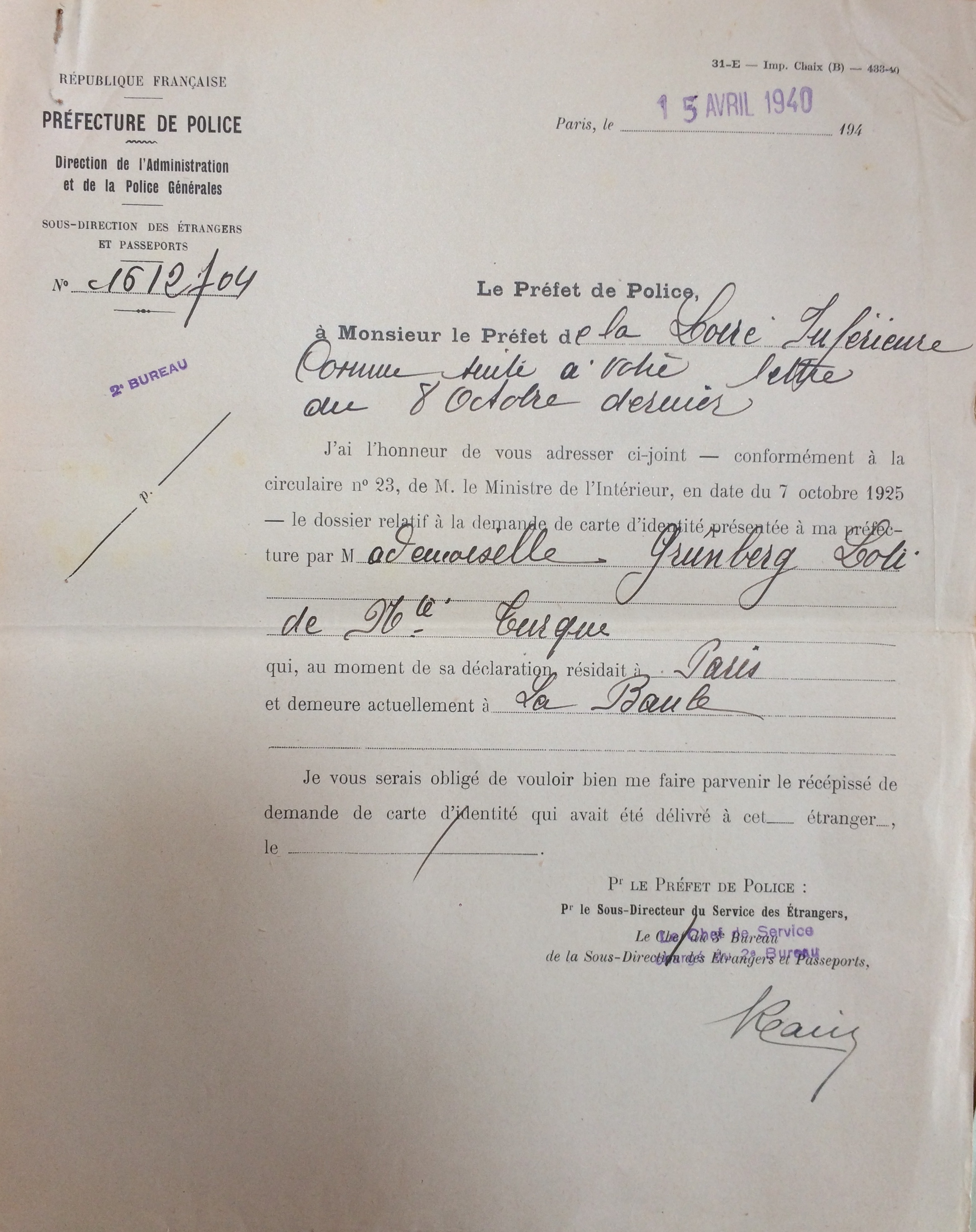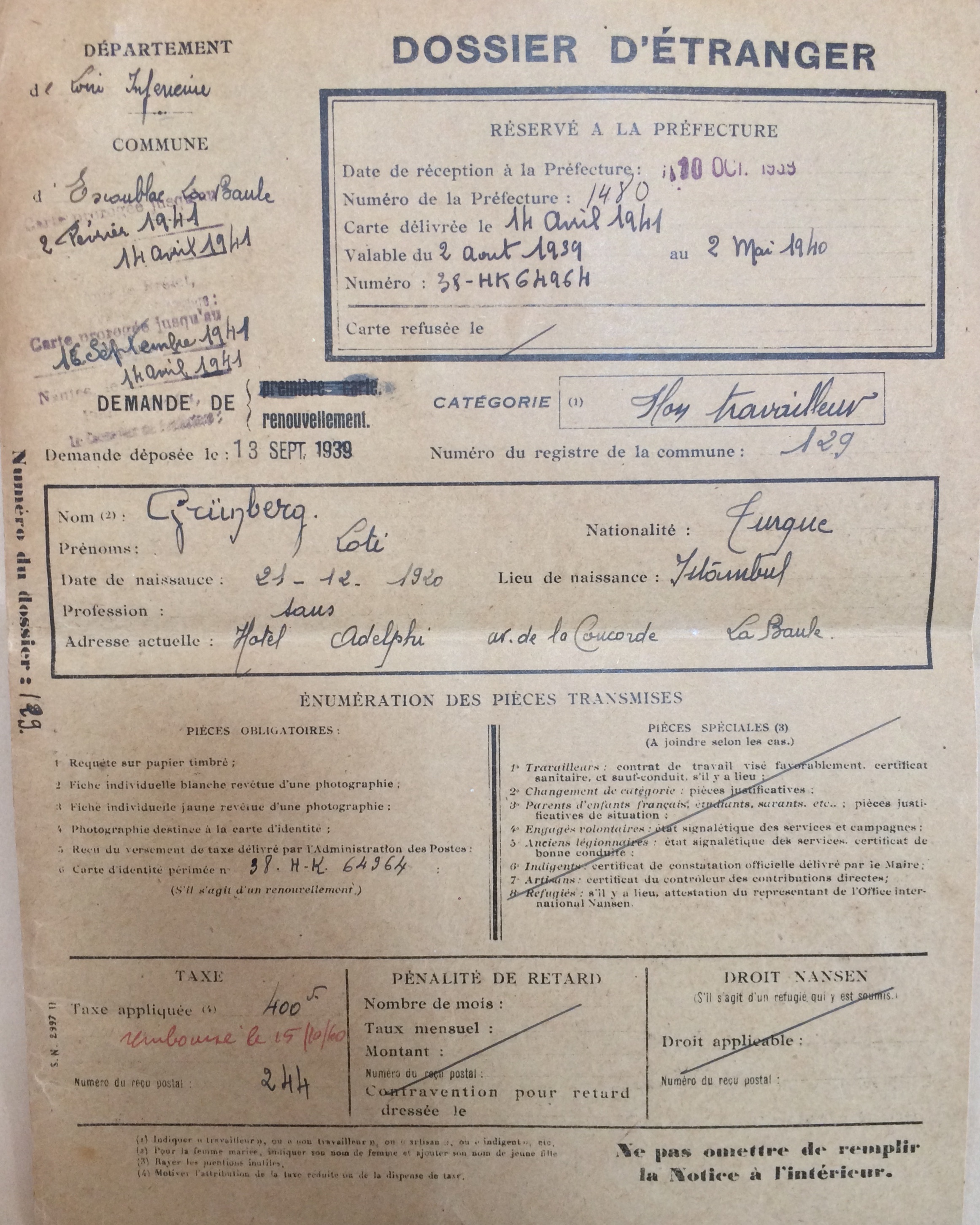 Dossier d’étranger de Loti GRÜNBERG [ADLA 4M