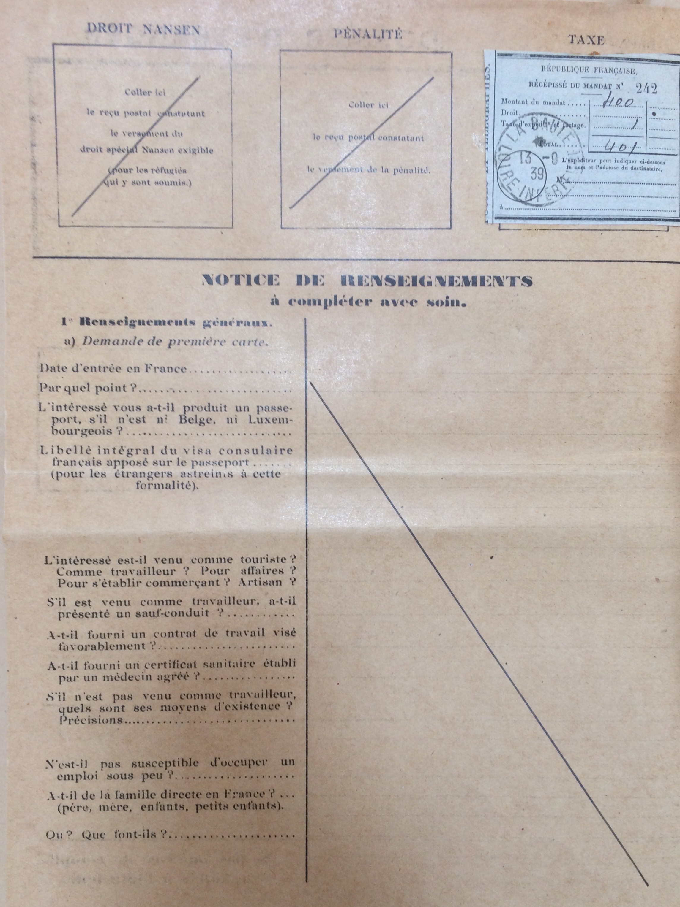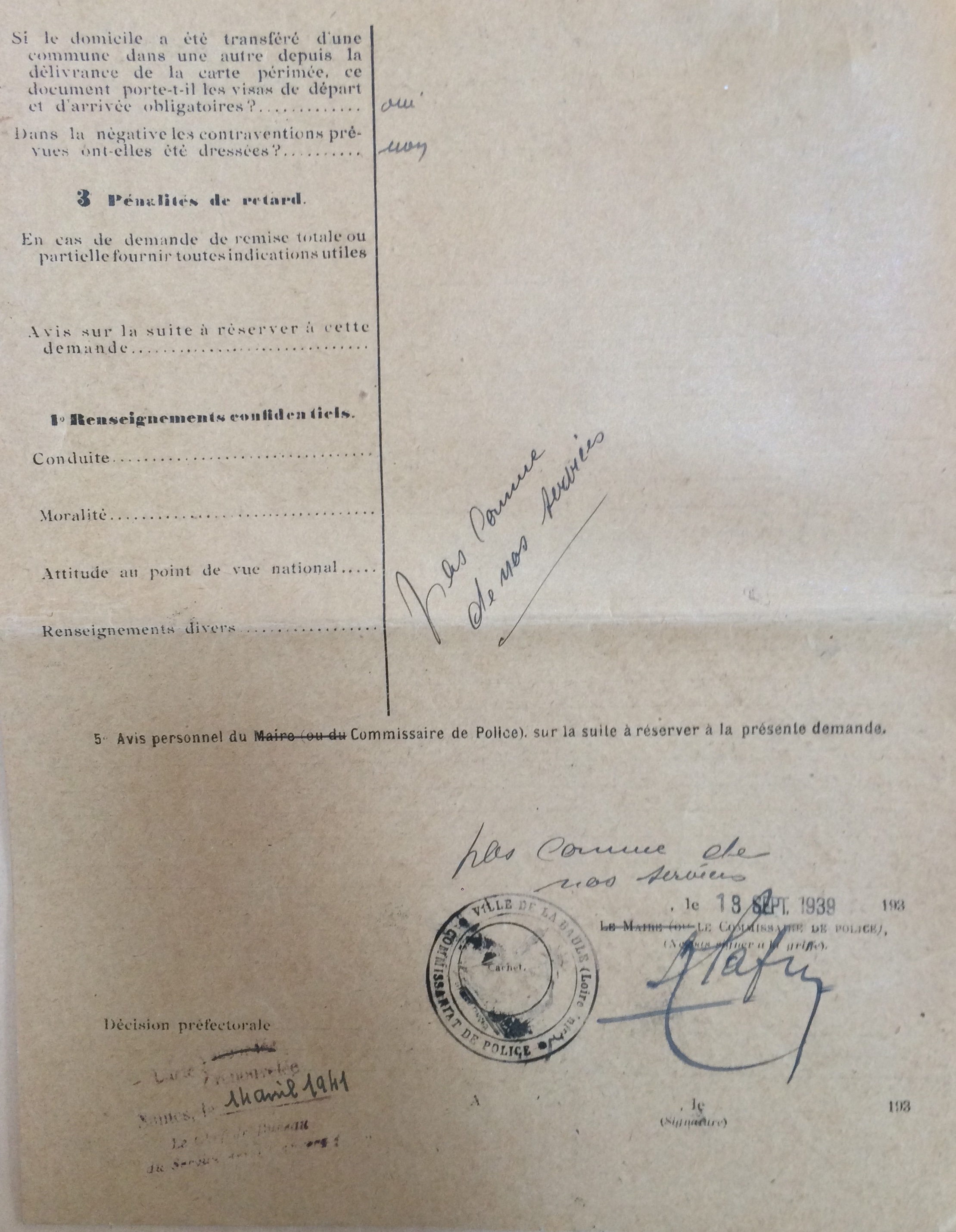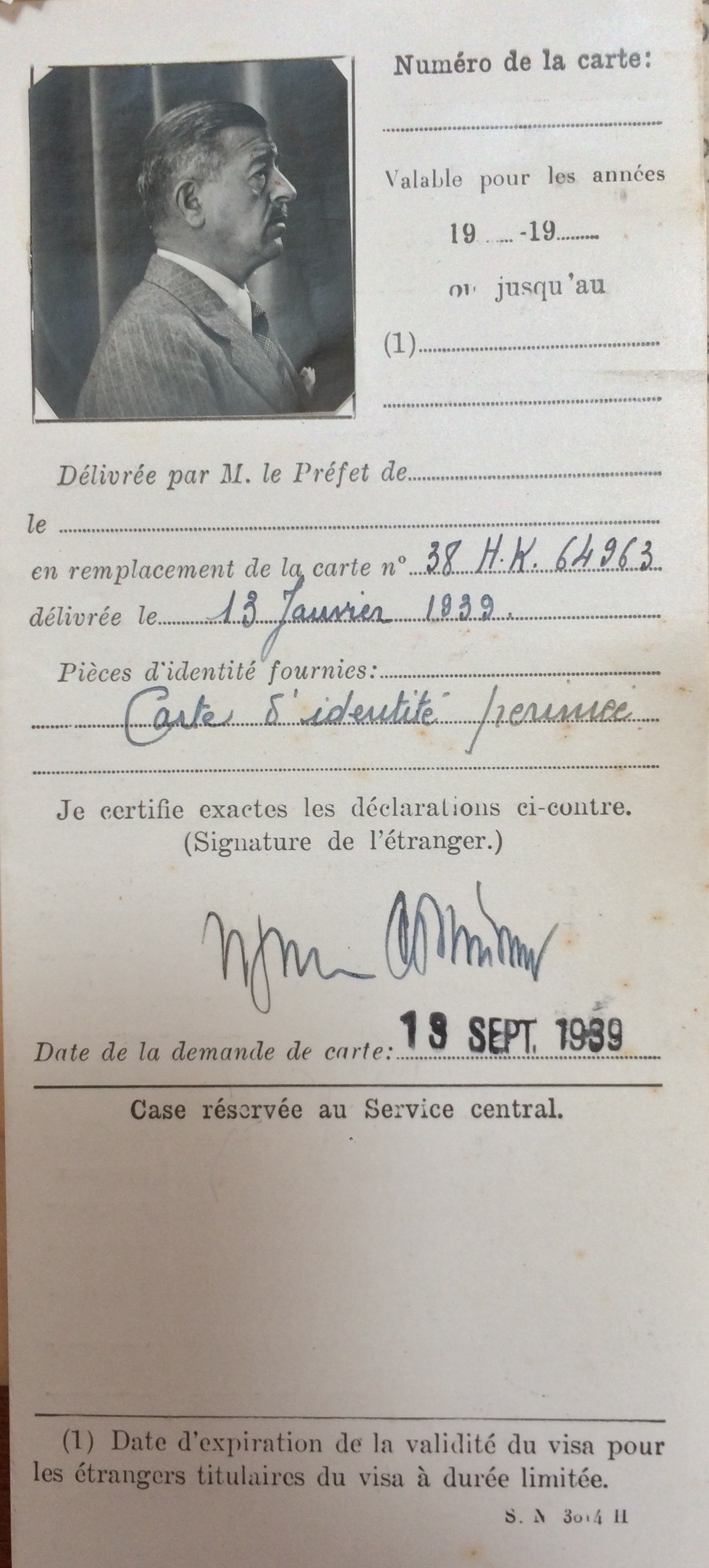 Toute la famille (sauf Paul) effectue une demande de renouvellement de carte d’identité pour étrangers le 13 septembre 1939. Afin d’appuyer leur demande, ils font intervenir le sénateur Jean ODIN.