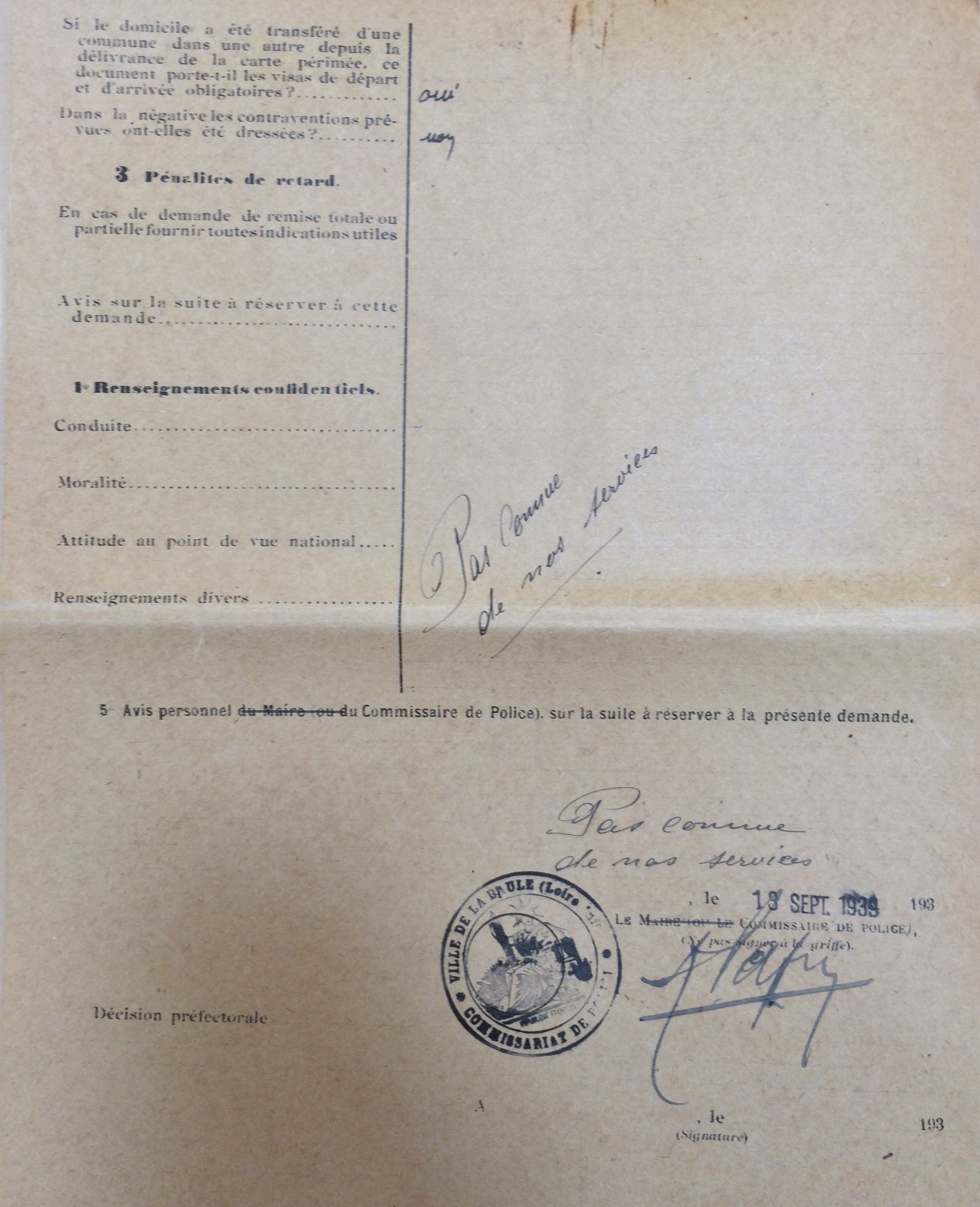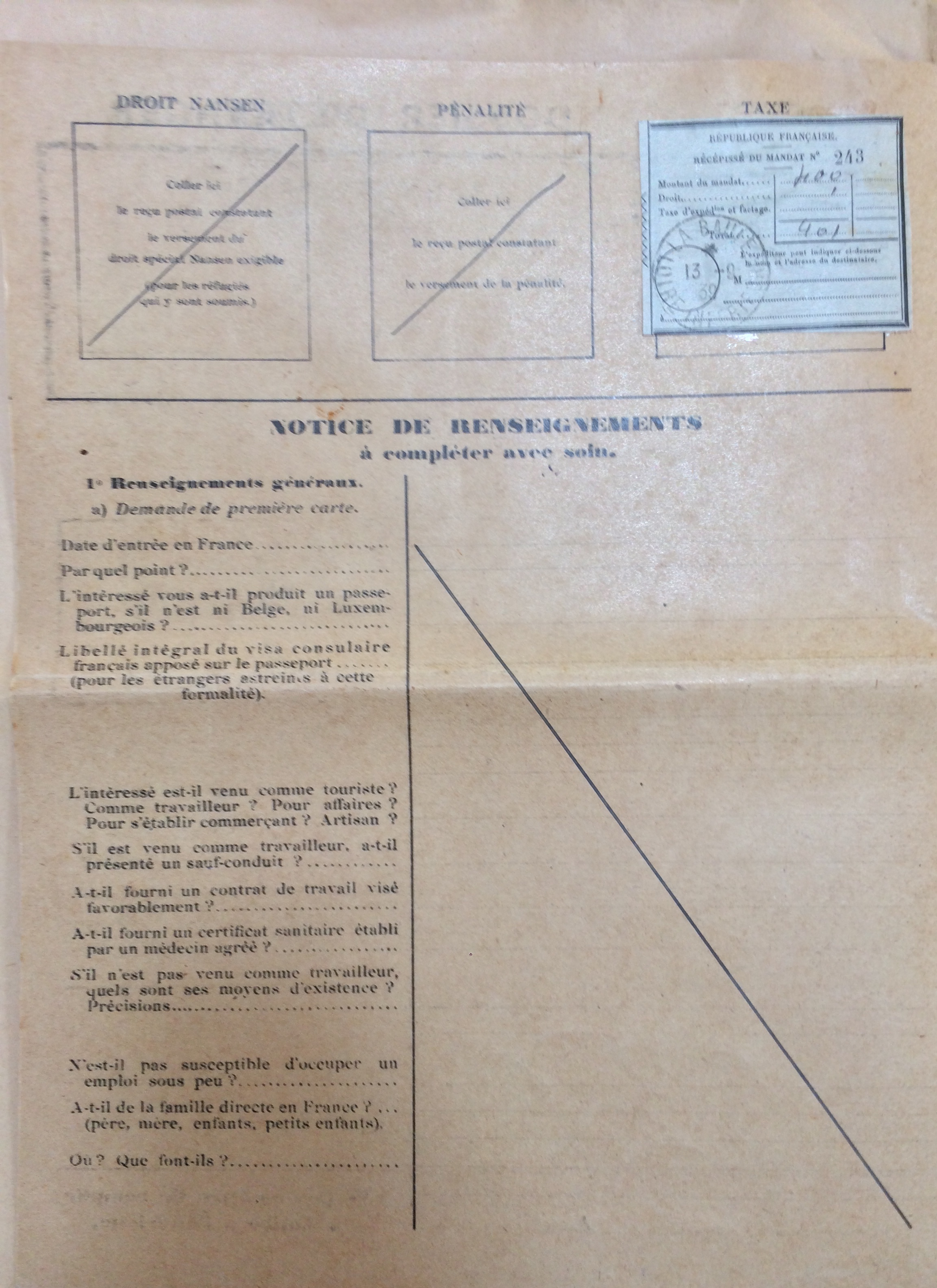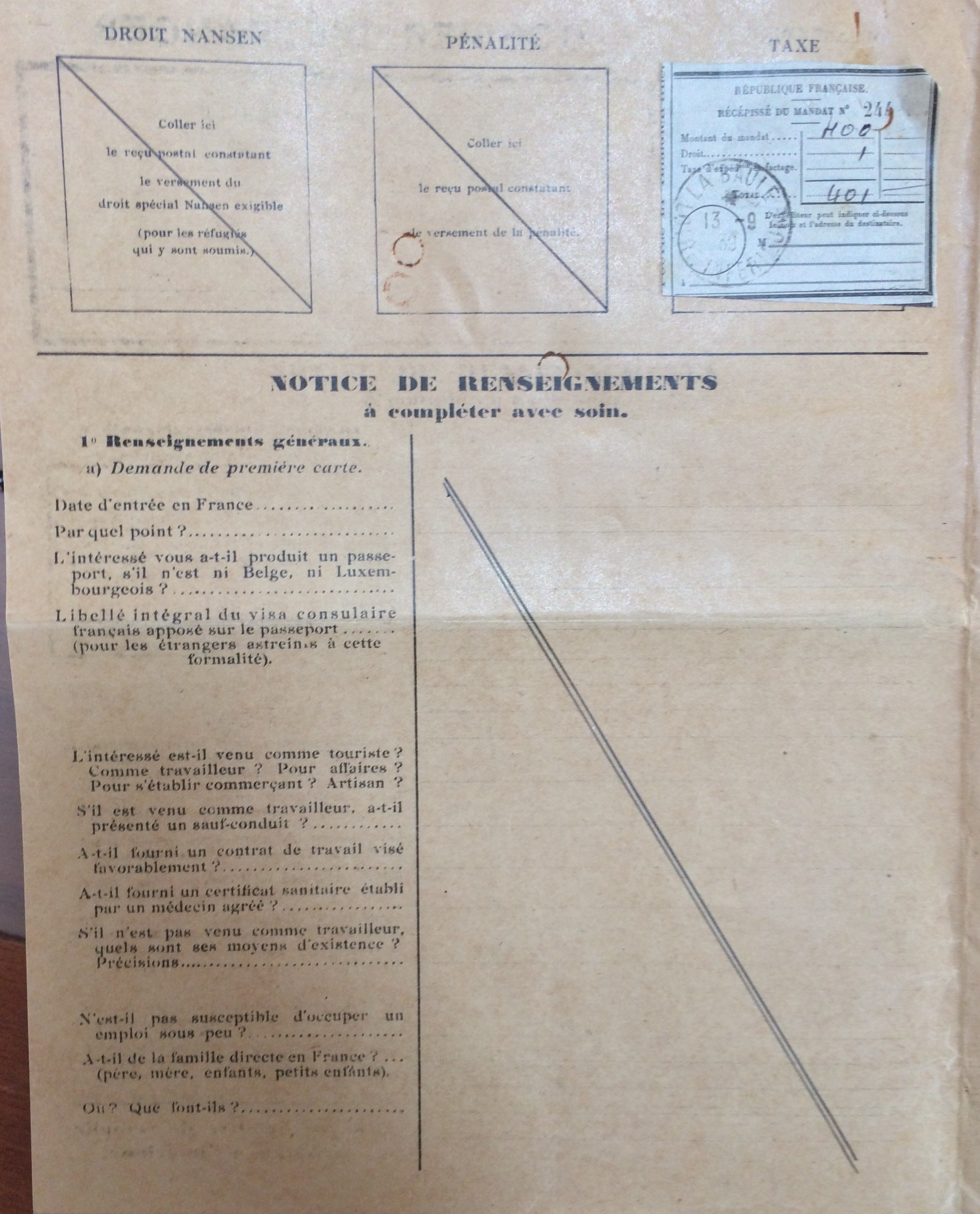 Toute la famille (sauf Paul) effectue une demande de renouvellement de carte d’identité pour étrangers le 13 septembre 1939. Afin d’appuyer leur demande, ils font intervenir le sénateur Jean ODIN.