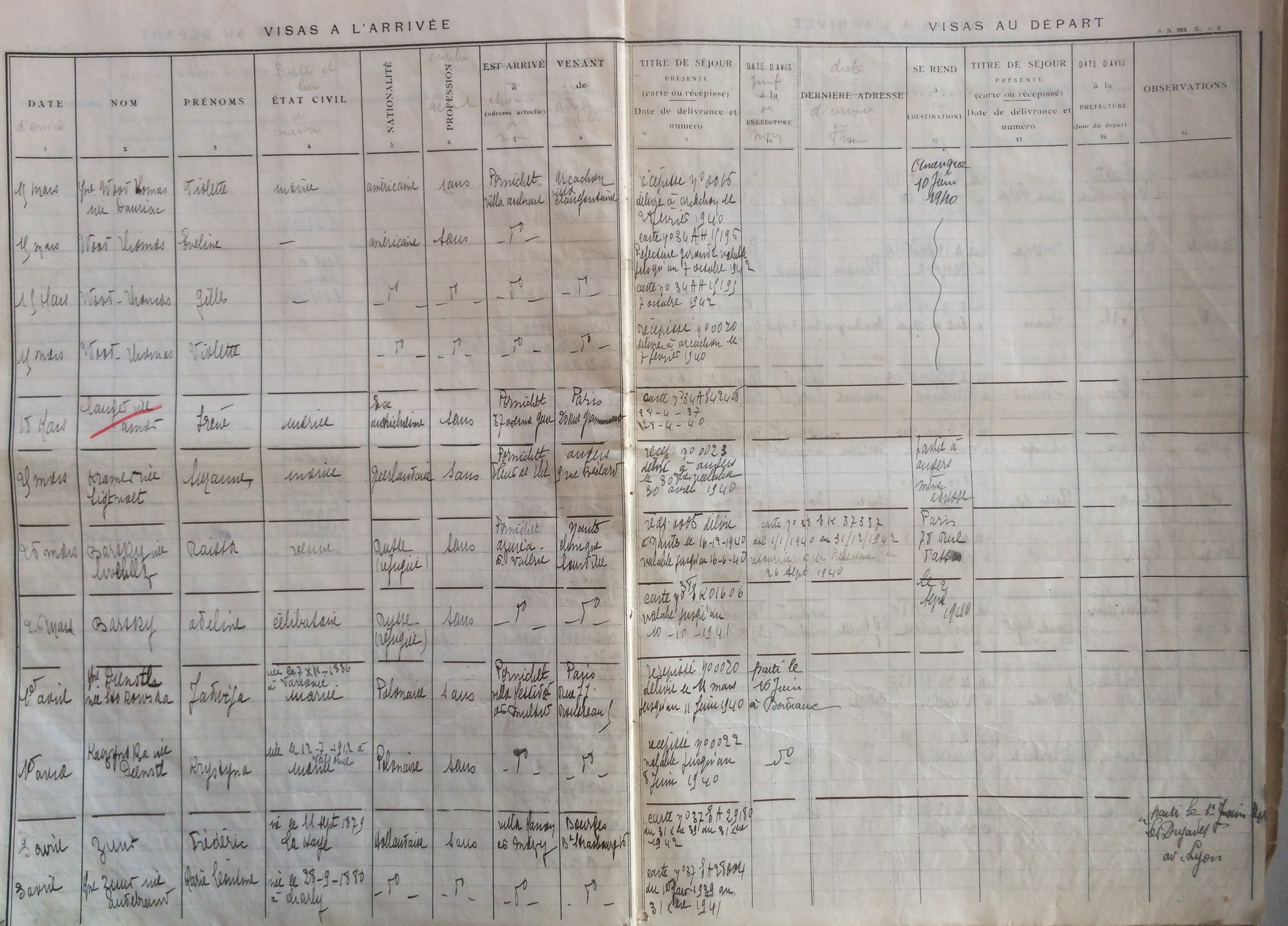 Elle se déclare comme juif entre le 25 septembre et le 20 octobre 1940 à la sous-préfecture de Saint-Nazaire sous le numéro 45. Sa soeur et son beau-frère se sont déclarés juste avant. Elle habite chez sa soeur Lucie 37, avenue de la Gare à PORNICHET. Erwin n’est pas présent.