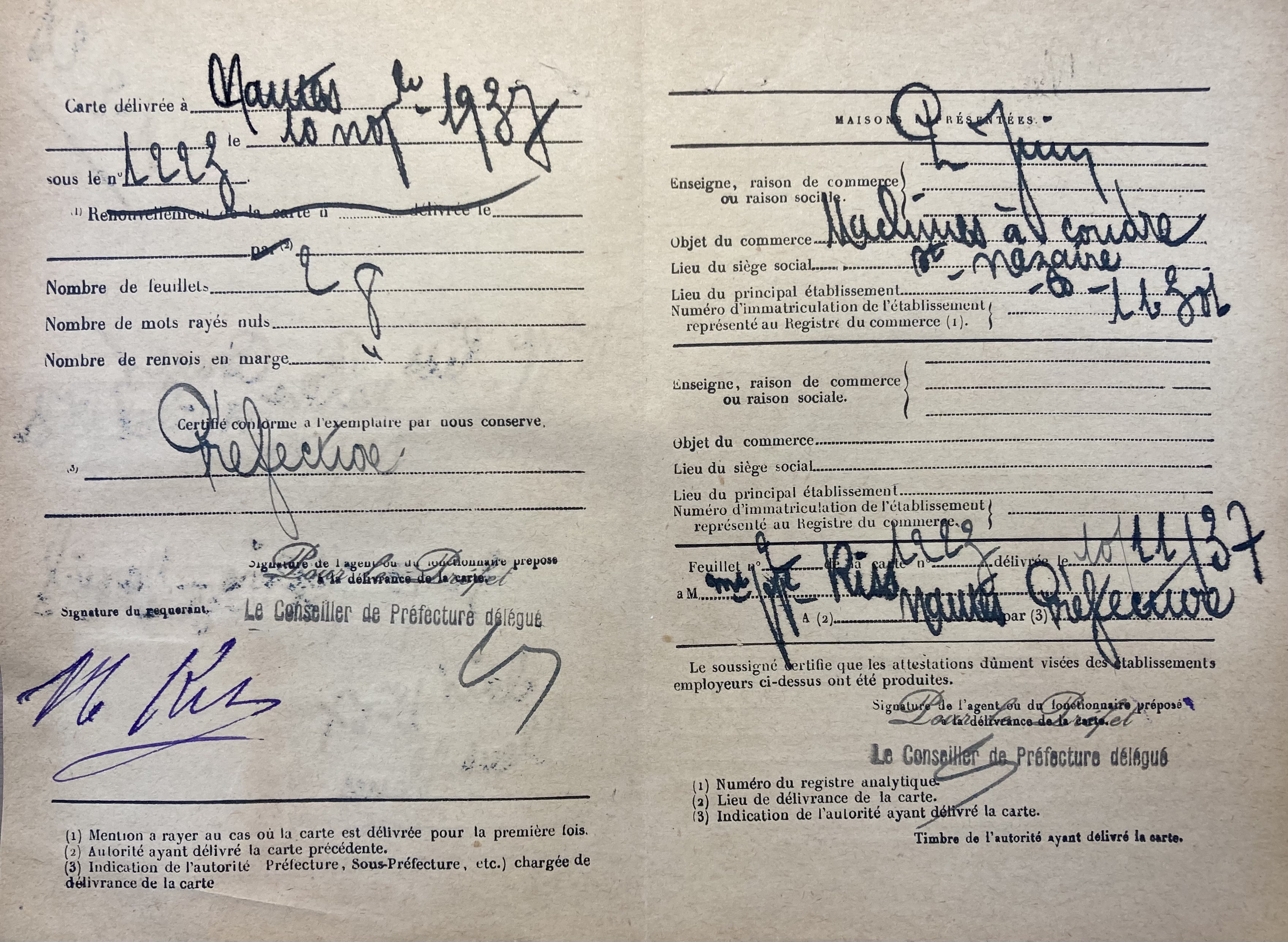 Entre le 25 septembre et le 20 octobre 1940, Yvonne RISS se fait recenser à la sous-préfecture de Saint-Nazaire sous le numéro 7.