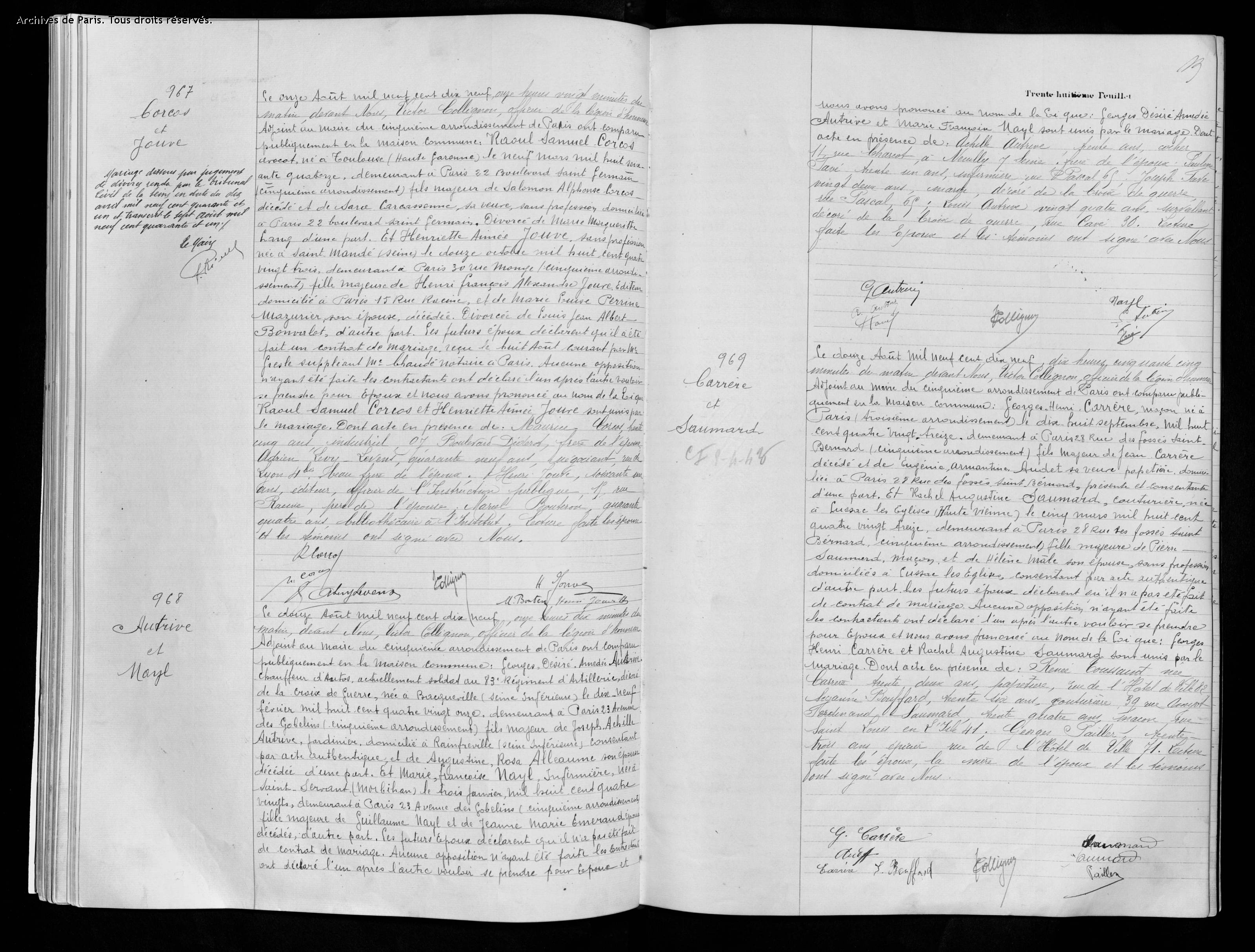 Raoul Samuel CORCOS est né le 09 mars 1874 à Toulouse (Haute-Garonne) [Père : Salomon CORCOS de profession négociant et Mère : Sara CARCASSONNE). Il épouse en première noce Marie Marguerite LANG à Rouen le 11 mars 1912 puis se marie avec Henriette Marie Aimée JOUVE née le 12 octobre 1833 à Saint-Mandé [Père : JOUVE Henri, profession journaliste et Mère : Marie MAZURIER], mariage contracté le 11 août 1919 à Paris (5ème arrondissement) de laquelle il divorce le 10 avril 1941 pour se remarier avec la même personne 4 ans plus tard, c’est à dire le 07 juillet 1945 à Paris (5ème arrondissement).