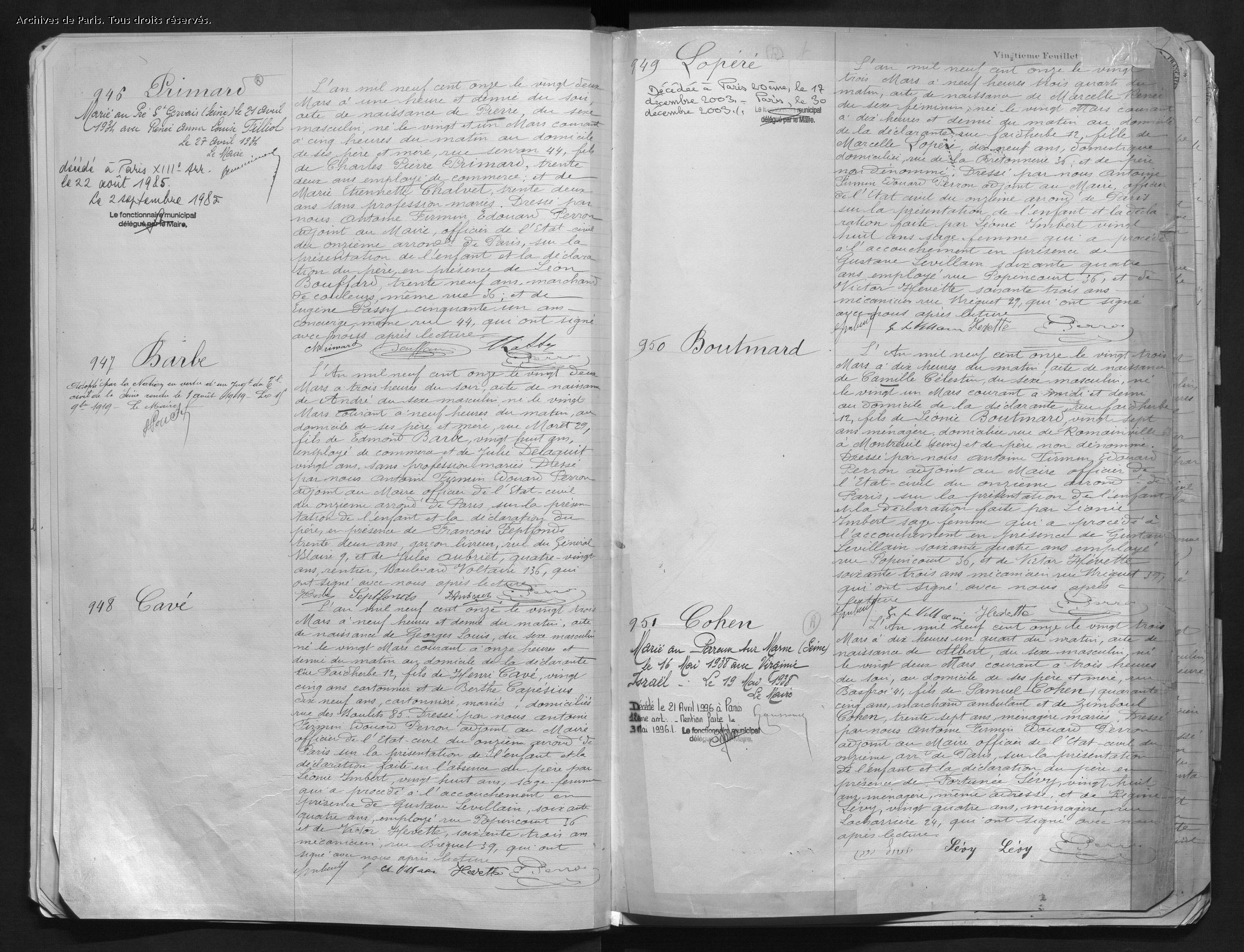 Albert COHEN est né le 22 mars 1911 à Paris (11ème arrondissement). [Père : COHEN Samuel, marchand ambulant Mère : COHEN Zimboul, ménagère].