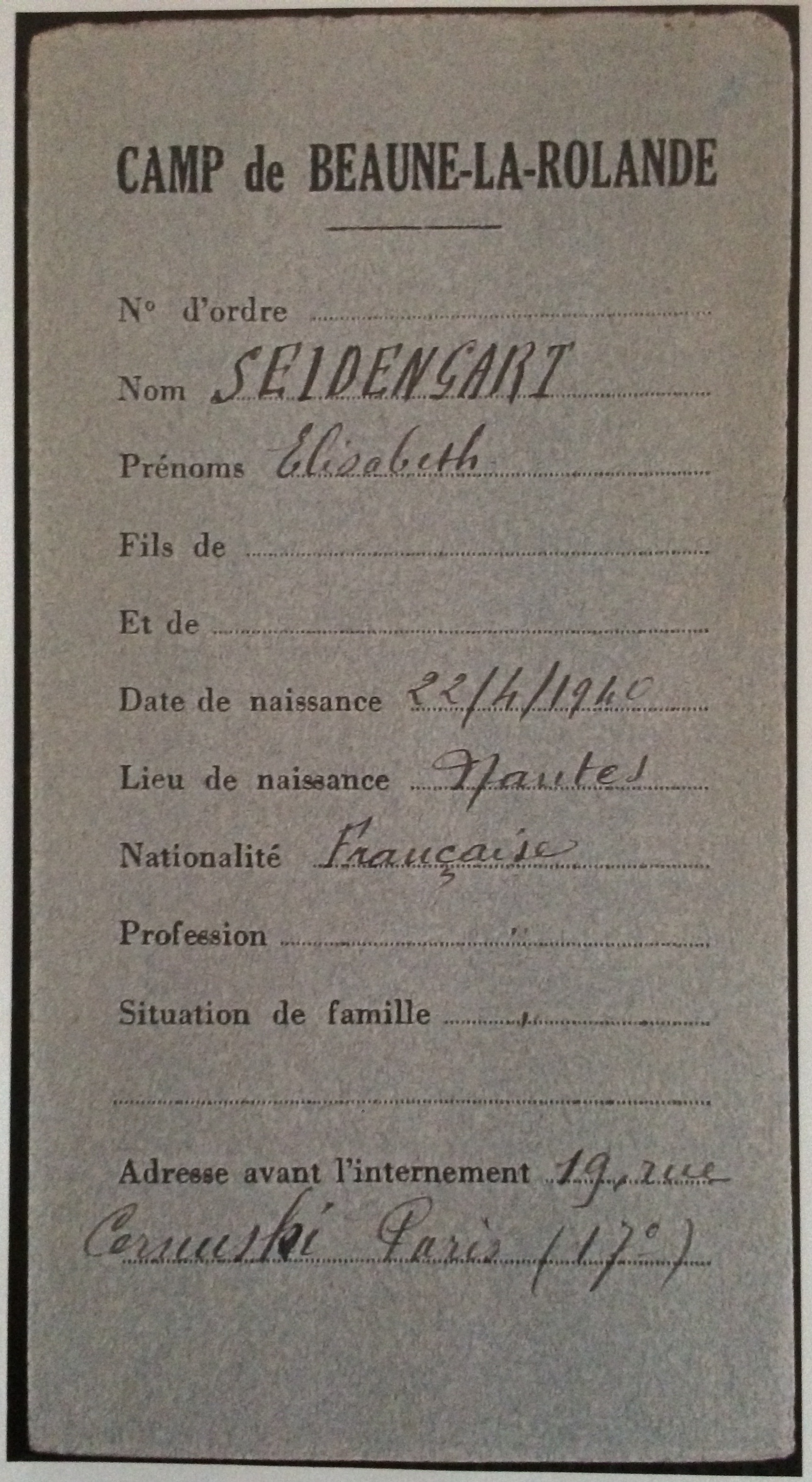 Je me suis trouvée en présence d’une famille composée d’une jeune femme Madame Simone SEIDENGART née CERF (dont le mari était prisonnier de guerre), de son bébé, la petite Elisabeth SEIDENGART appelée communément Betty et de ses parents, Monsieur Léon CERF et Madame Aimée CERF née HERSE.