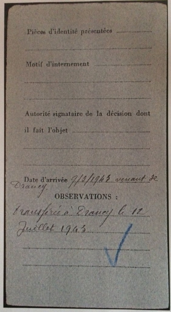 Elles quittent le camp de La Lande pour le camp de Drancy où elles arrivent le 05 septembre 1942 le lendemain où l’époux d’Aimée, Léon a été envoyé à Pithiviers.