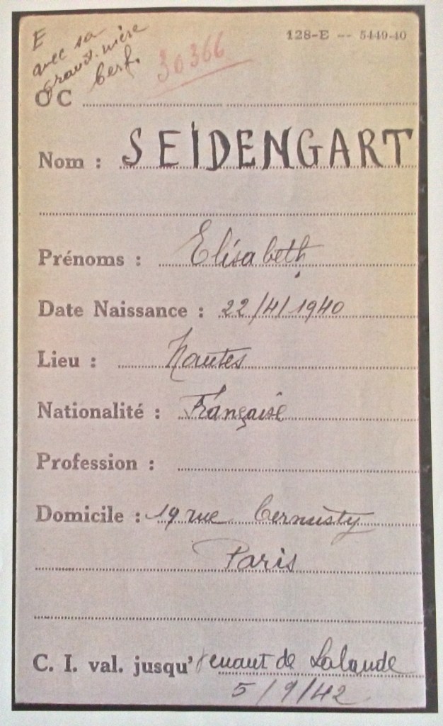 Simone SEIDENGART, qui habite 19 rue Cernuschi dans le 17ème arrondissement à Paris, se déplace en Loire-Inférieure et met au monde à Nantes Elisabeth née le 22 avril 1940 rue des Folies Chaillou. Puis après l’accouchement, elle va rejoindre ses parents à Sainte-Marie dans la villa Ma Miniou que possède la famille depuis 1924.