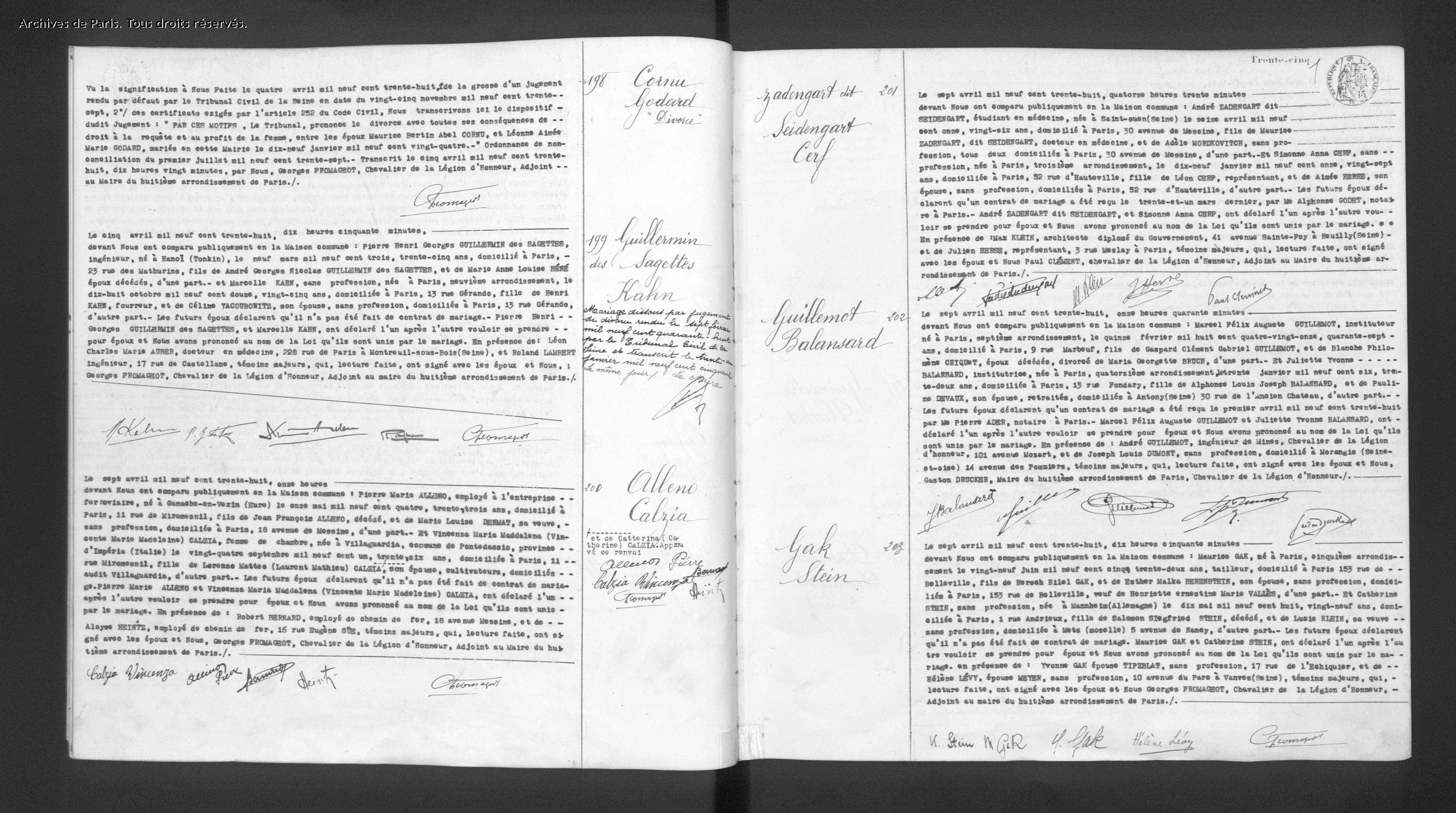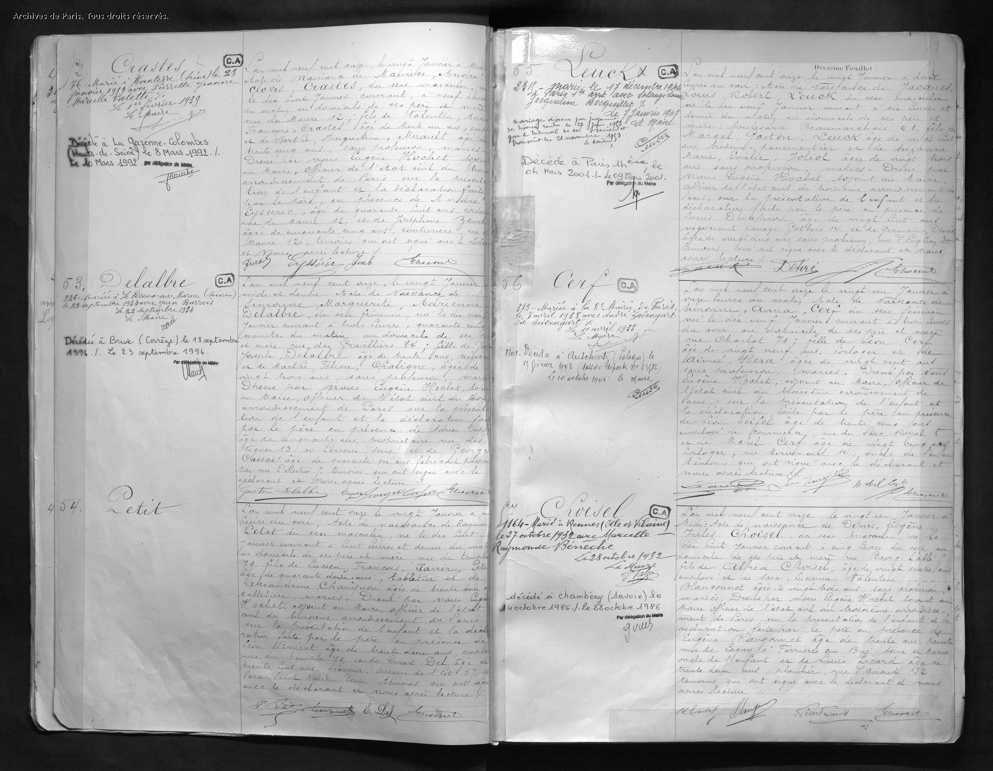 Actes d’Etat civil [Archives Municipales de Paris, AD075EC_03N155_0010 et AD075EC_08M281_0035, en ligne]