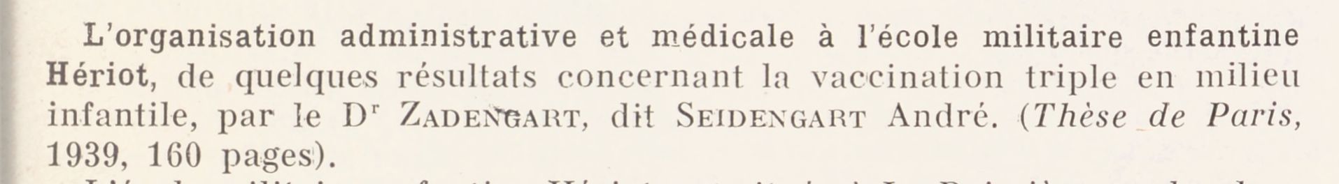 André SEIDENGART passe sa thèse de médecine en 1939 sur le thème de la vaccination infantile.