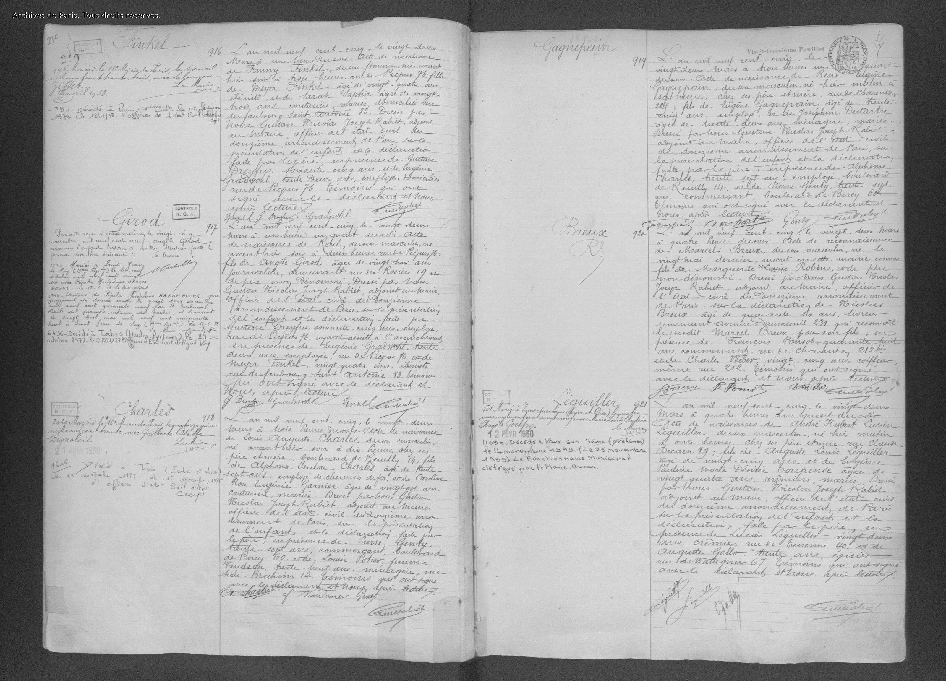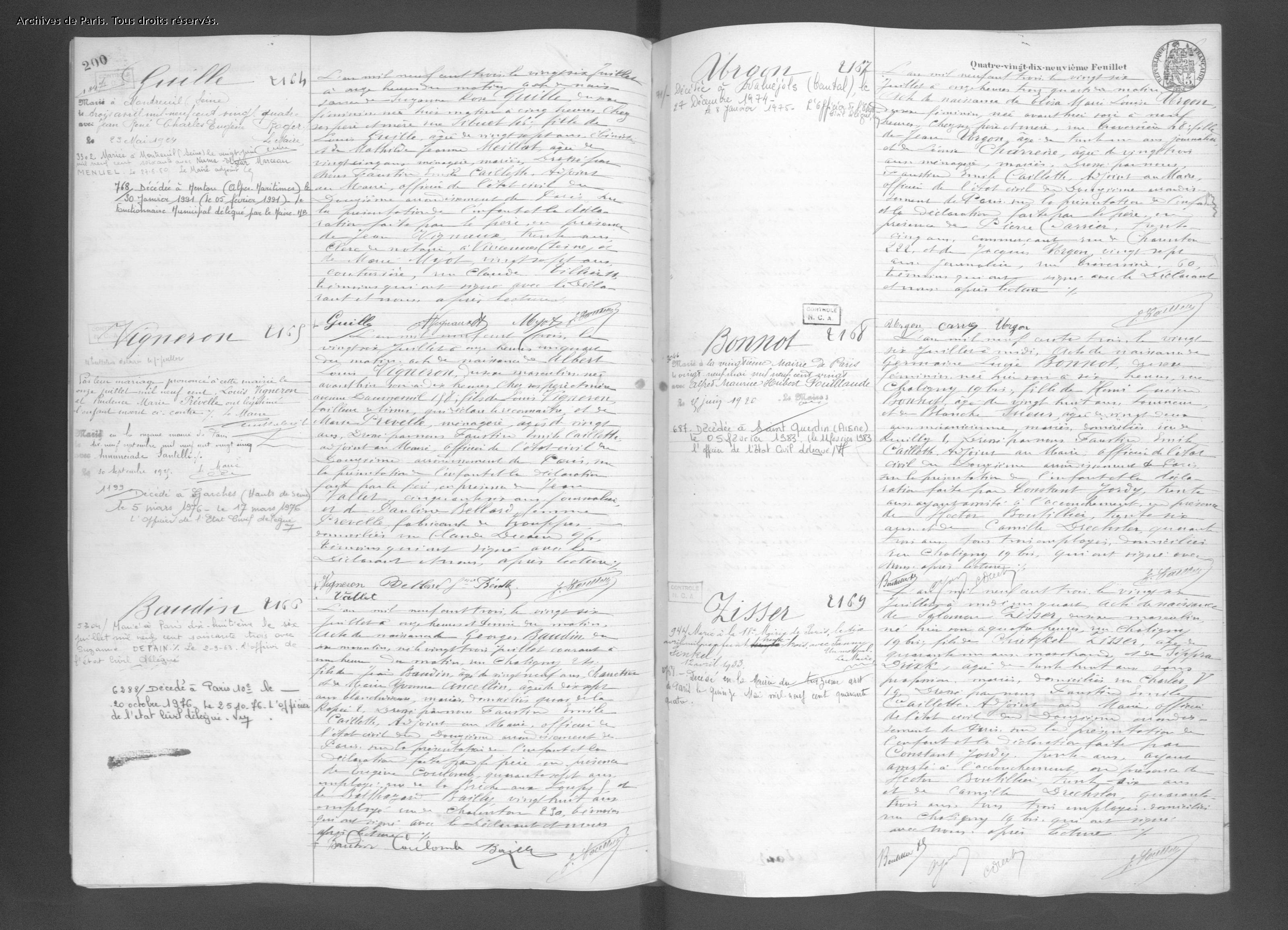 Etat civil de la ville de Paris [AD075EC_12N210_0023, AD075EC_18M587_0066 et AD075EC_12N200_0099]