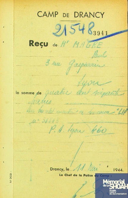 Salomon ZISSER est arrêté sur dénonciation comme résistant/israëlite sous le nom de Paul MAGRE à Lyon, rue Gasparin le 29 avril 1944 par la « Gestapo » puis envoyé au fort de Montluc (Lyon) puis envoyé sur Drancy le 11 mai 1944 et immatriculé sous le numéro 21548.