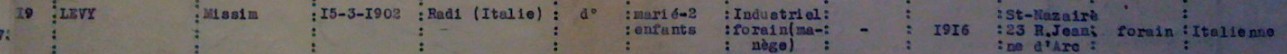 Nissim LEVY (prénom usuel Vincent) est né à Rodi (Ile de Rhodes, alors sous occupation italienne) le 15 mars 1902 [Père : Jacob et Mère : Gohevet HASSON]. Présent en France depuis 1916, il exerce la profession de marchand forain et plus exactement tenant un manège d’attraction foraine et se marie le 18 mai 1940 à Saint-Nazaire avec Alexandrine CAROBBE (prénom usuel Madeleine) née le 03 août 1905 à Barfleur (Manche) où les époux résident place Marceau.