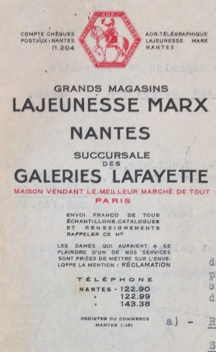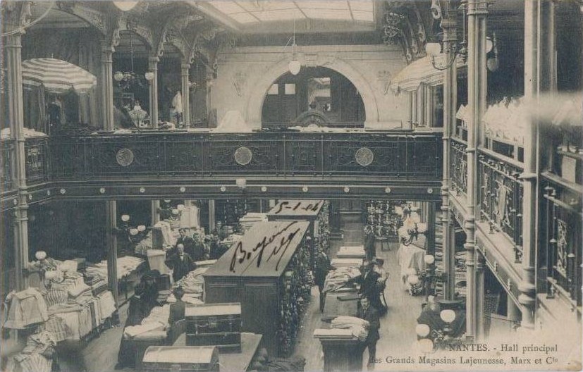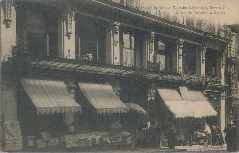 Les grands magasins MARX et Cie sont créés à Nantes au milieu du XIXème siècle par Lajeunesse Levy MARX (né à Nancy le 25 juin 1802 et décédé à Nantes le 18 septembre 1846, 18, rue du Calvaire) . Plus de renseignements à cette adresse : https://www.lyceedenantes.fr/wp-content/uploads/2020/08/LTD-N%C2%B04-La-Saga-Marx.pdf