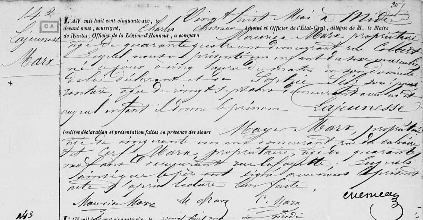![Acte de naissance de Lajeunesse MARX [Archives Municipales de Nantes]](https://shoahpresquile.com/wp-content/uploads/2019/03/lajeunesseactenaissance.jpg)