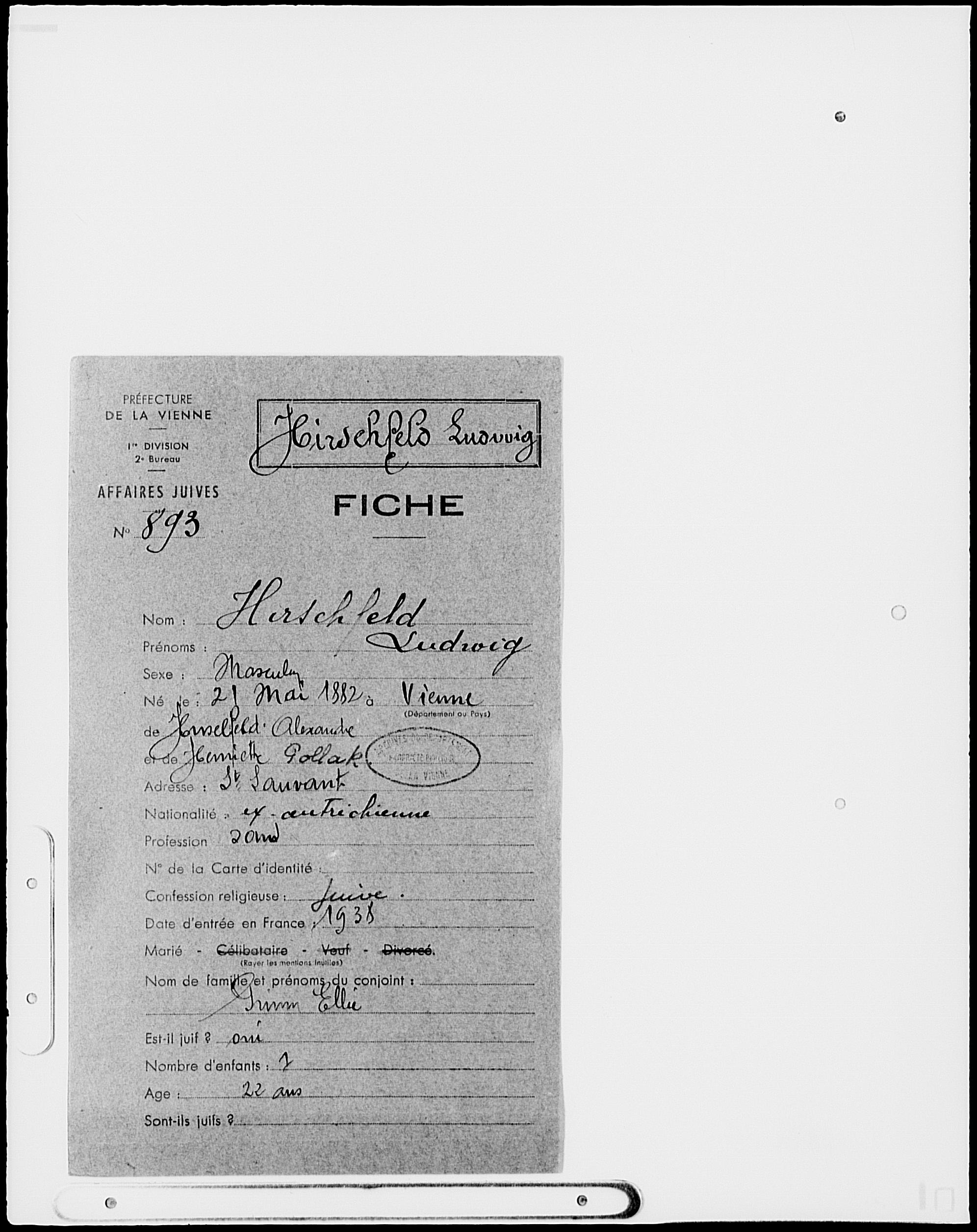 Fichier Juif de la Préfecture de la Vienne [22U369]