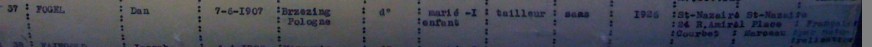 Dan FOGIEL exerce la profession de modéliste entre janvier 1930 jusqu’au 5 juin 1932 au 104, boulevard de la Chapelle à Paris dans le 18ème arrondissement puis déménage à Tergnier dans l’Aisne 17 boulevard Gustave Grégoire du 6 juin 1932 au 13 février 1934 pour finalement s’installer à Saint-Nazaire et créé un magasin de confection « Au tailleur de Roubaix » situé 22, place Marceau le 25 février 1934 avec Szlama FOGIEL, son oncle. Dan FOGIEL dit Henri FOGIEL et Rajzla dite Rosa FOGIEL habitent 24, rue de l’amiral Courbet à Saint-Nazaire.