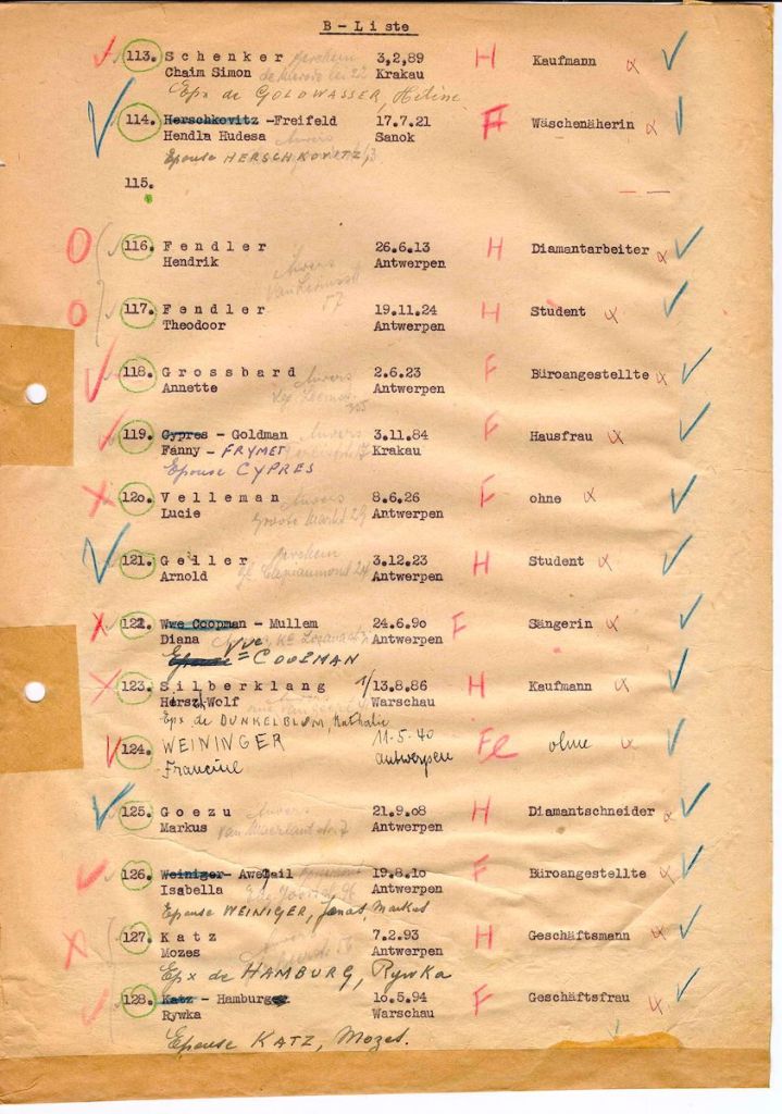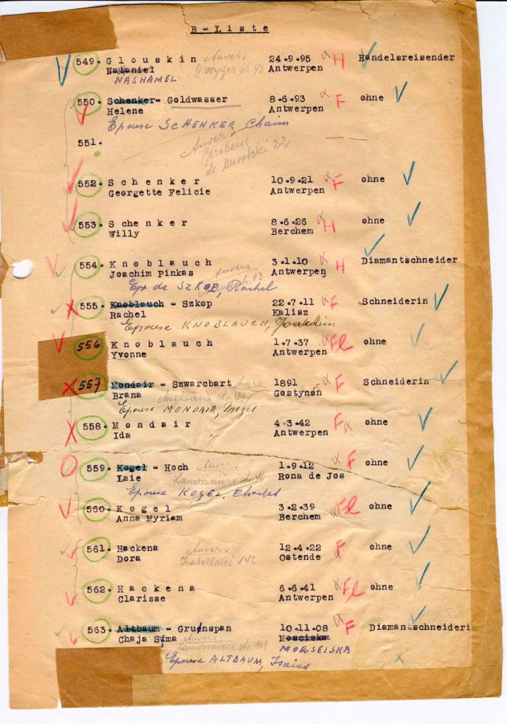 Simon, Hélène, Georgette et Willy sont déportés par le transport XXII B de Malines, Caserne Dossin, Camp, en Belgique à Auschwitz Birkenau, camp d’extermination, en Pologne, 20/09/1943 (source Yad Vashem)