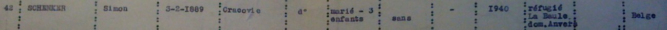 Simon SCHENKER est né le 03 février 1889 à Cracovie (Pologne), marié à Hélène SCHENKER née GOLDWASSER née le 08 juin 1893 à Antwerpen (Belgique). Ils ont trois enfants : Gilberte née le 10 septembre 1921, Willy né le 08 juin 1926 et ?.