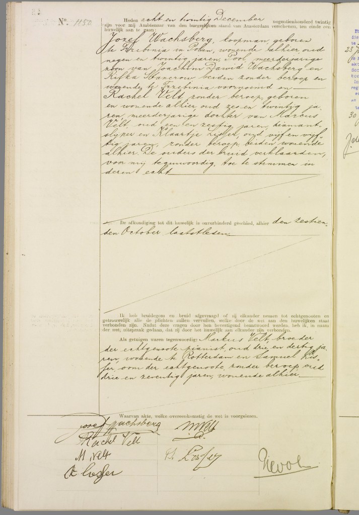 Le couple s’était marié le 28 décembre 1920 à Amsterdam.